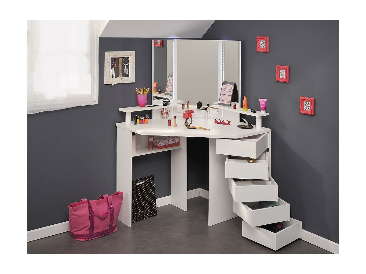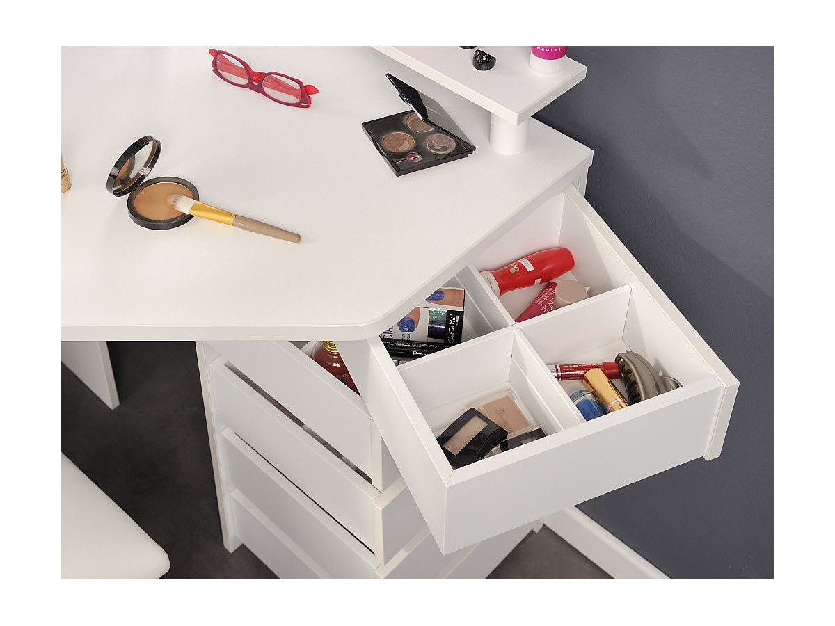 Toeletta con specchio e scomparti portaoggetti Bianco - MARILYN
