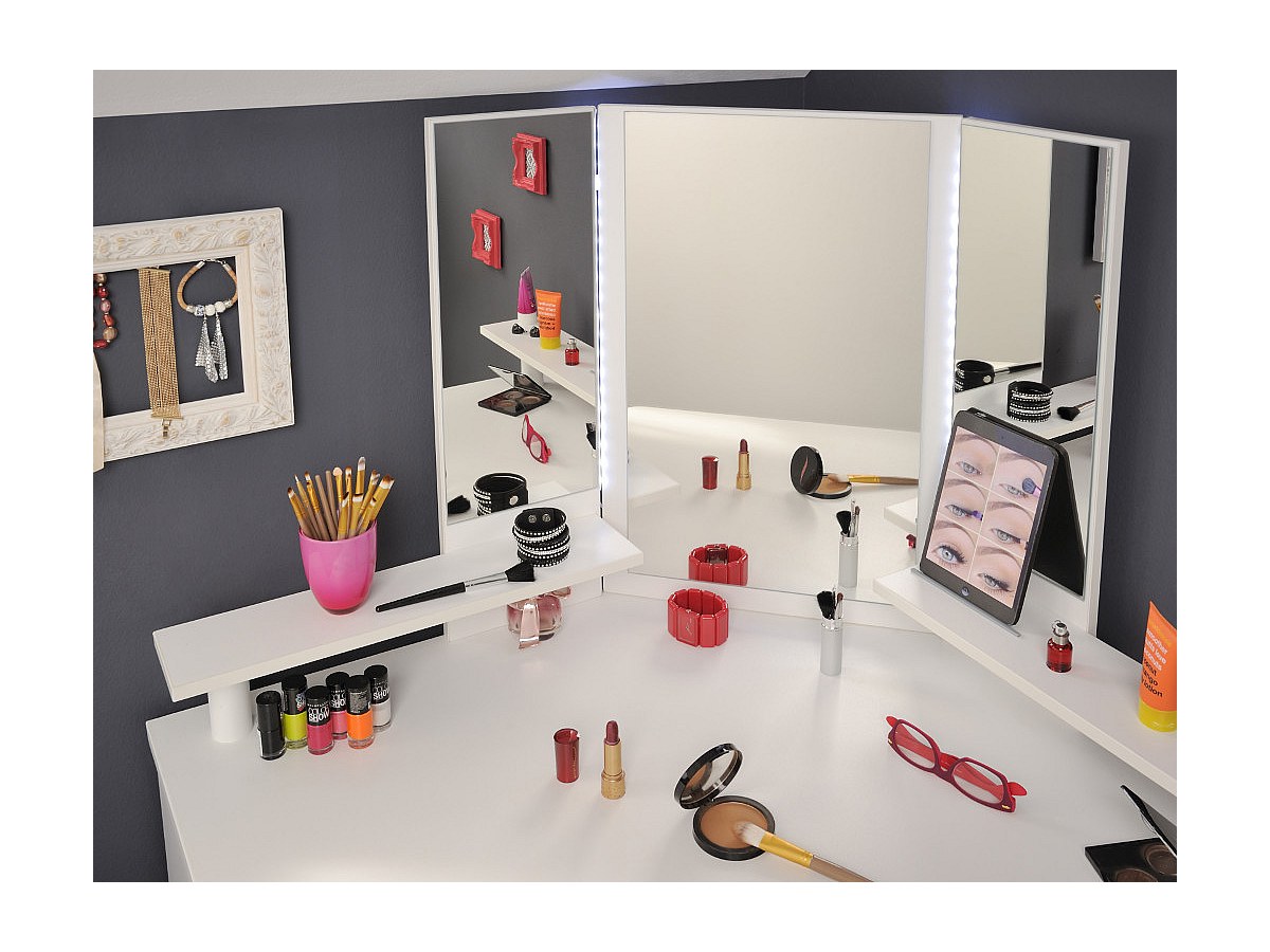 Il punto forte delle appassionate di moda: un supporto per smartphone e tablet è stato integrato al mobile, per offrirvi tutto il comfort mentre seguite i tutorial per il vostro prossimo trucco!