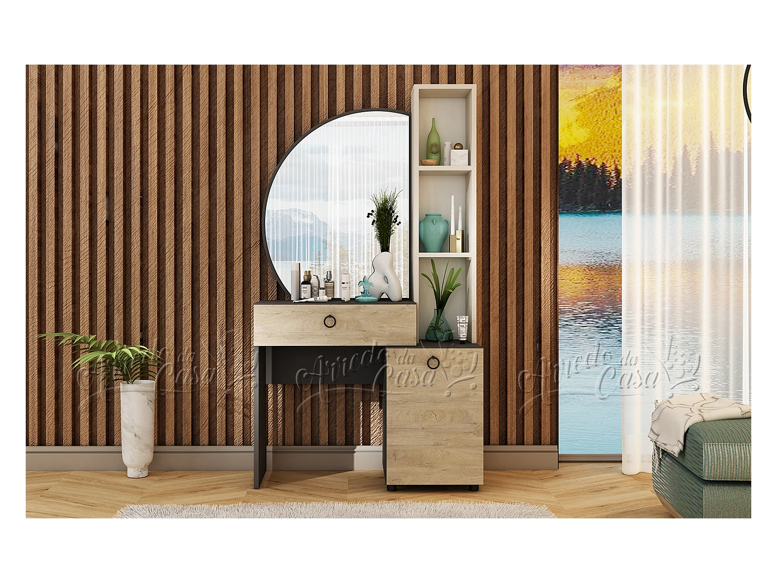 Toeletta moderna con specchio 170x95 cm beige, quercia e nero CU44