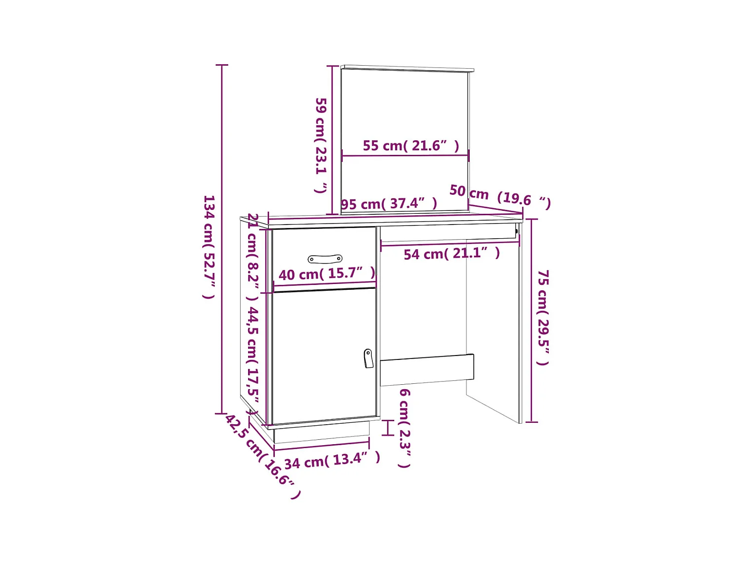 Toeletta tavolo da trucco mobile di design mobili per camera da letto marrone miele 95 x 50 x 134 cm legno di pino massiccio 02_0006332