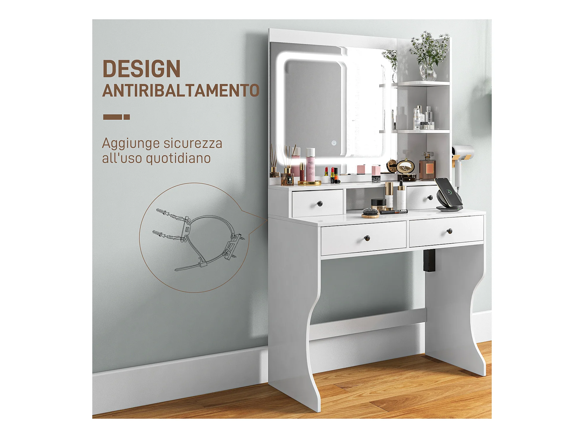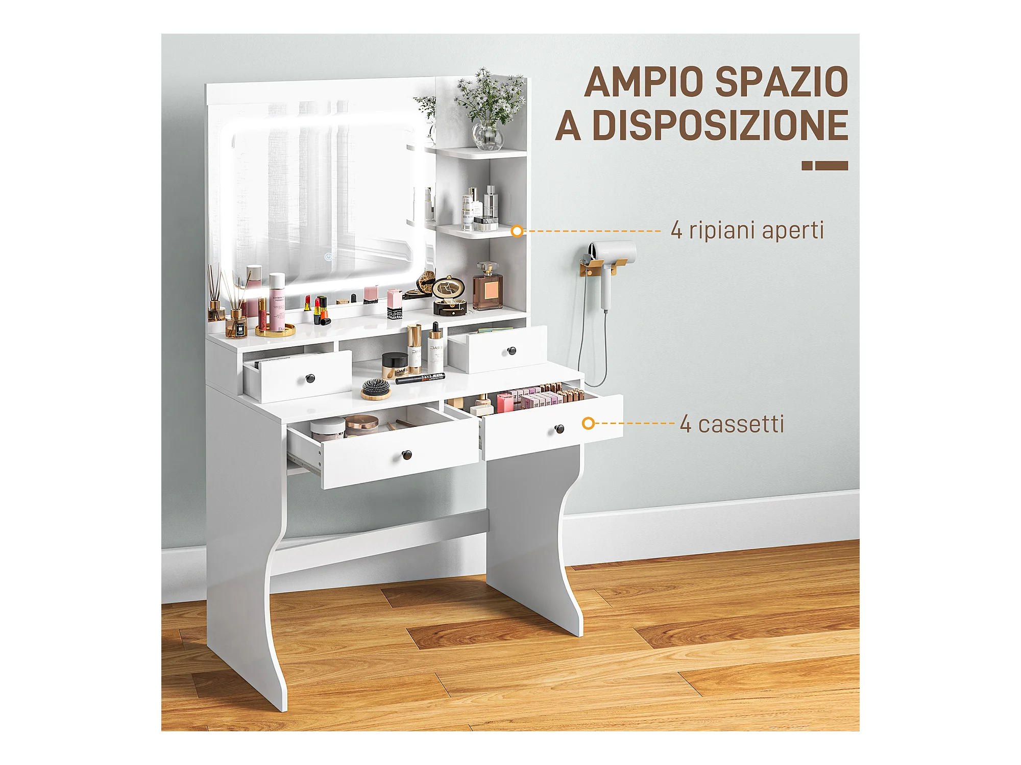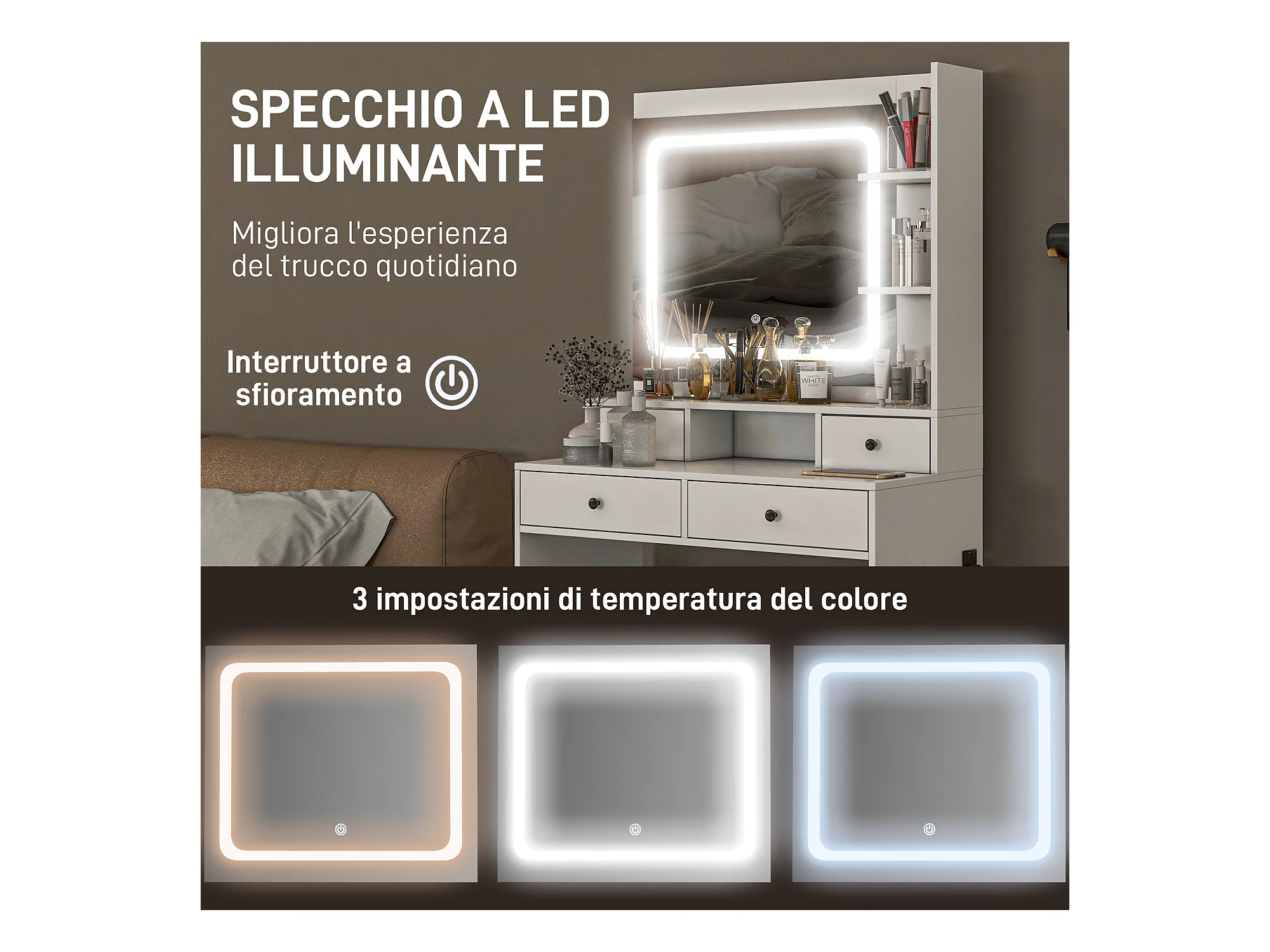 Tavolino cosmetico toeletta trucco make-up bianco con specchio illuminazione LED