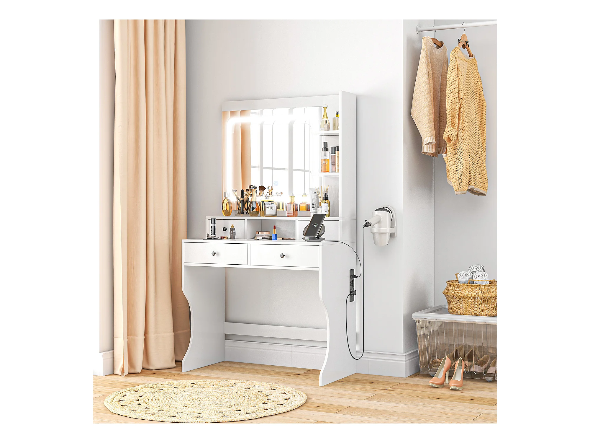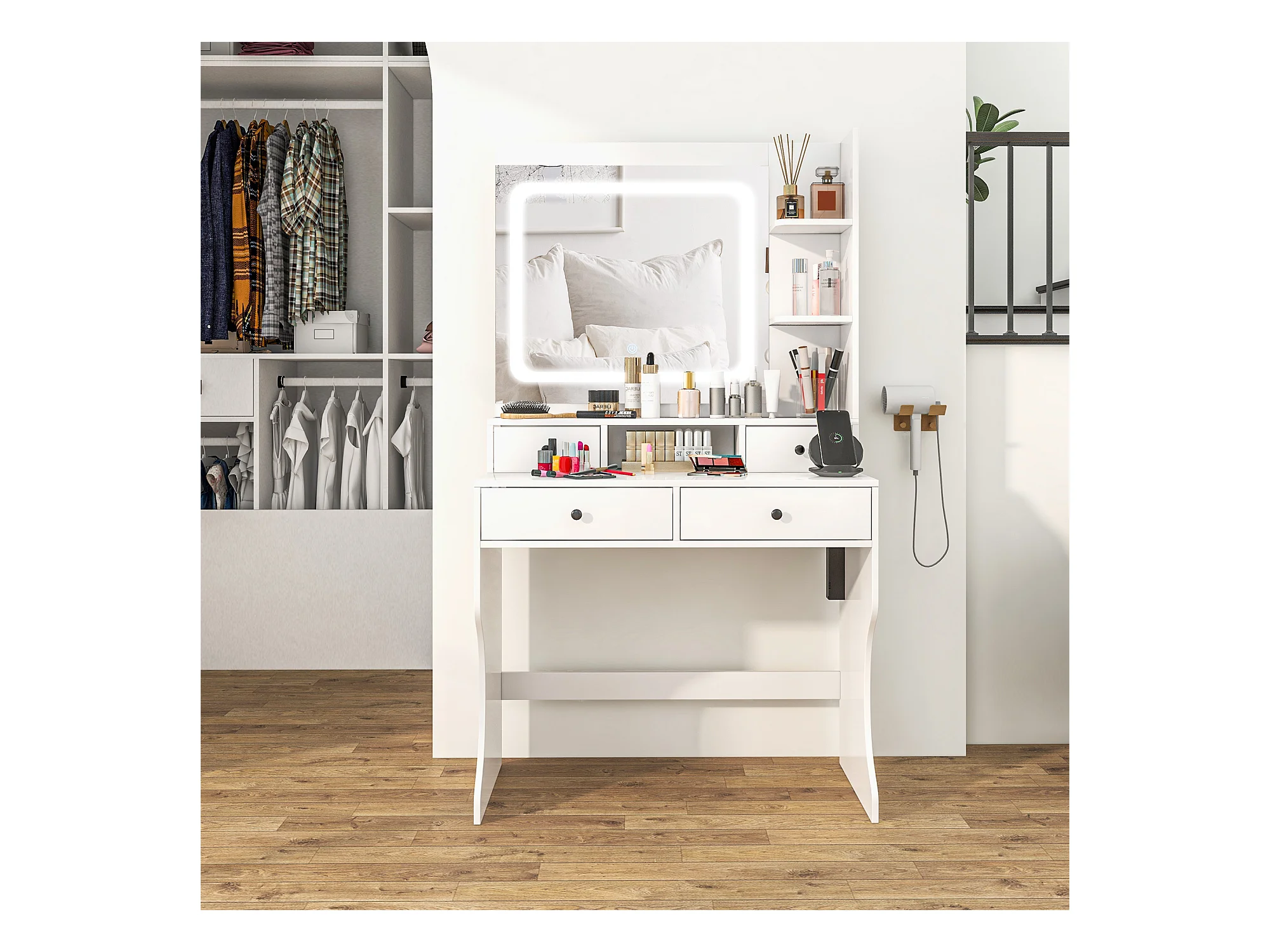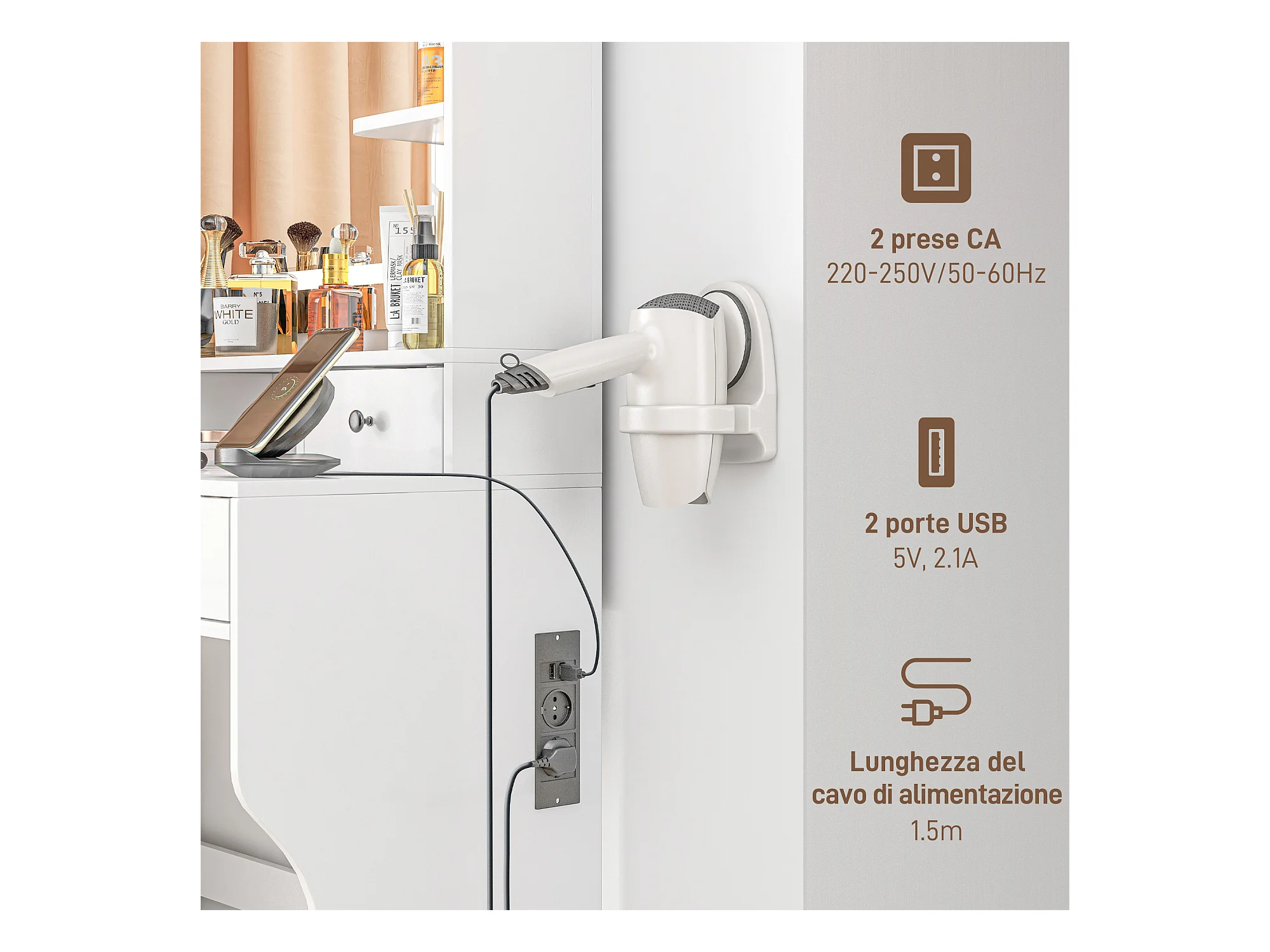 Tavolino cosmetico toeletta trucco make-up bianco con specchio illuminazione LED