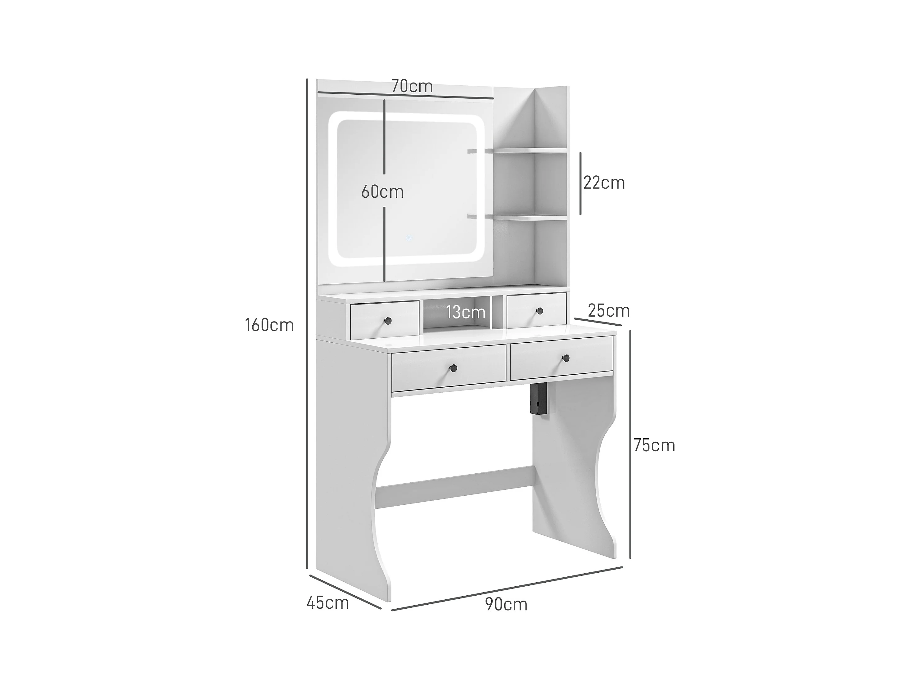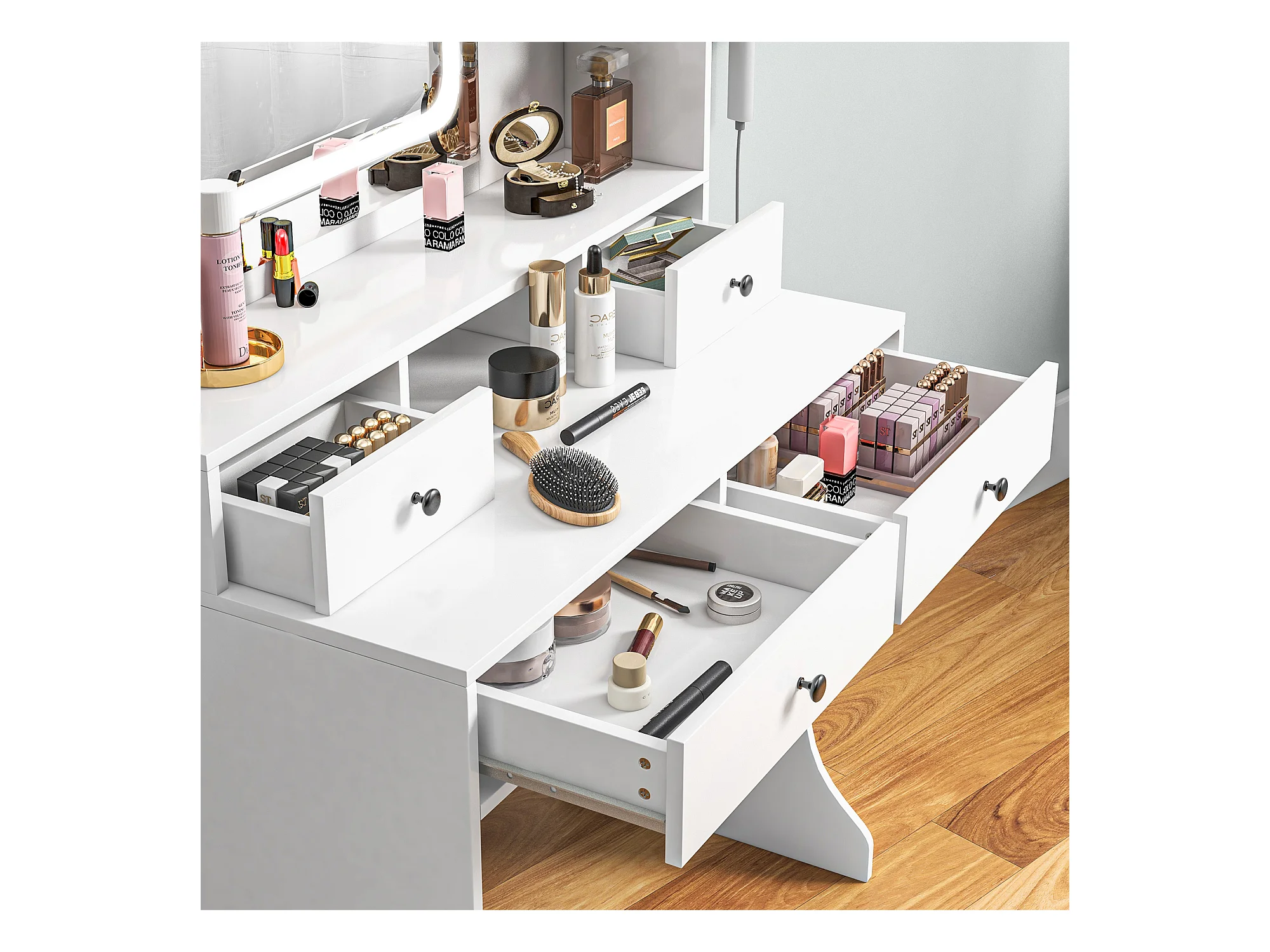 Toeletta trucco con specchio a luci led e 4 cassetti bianco