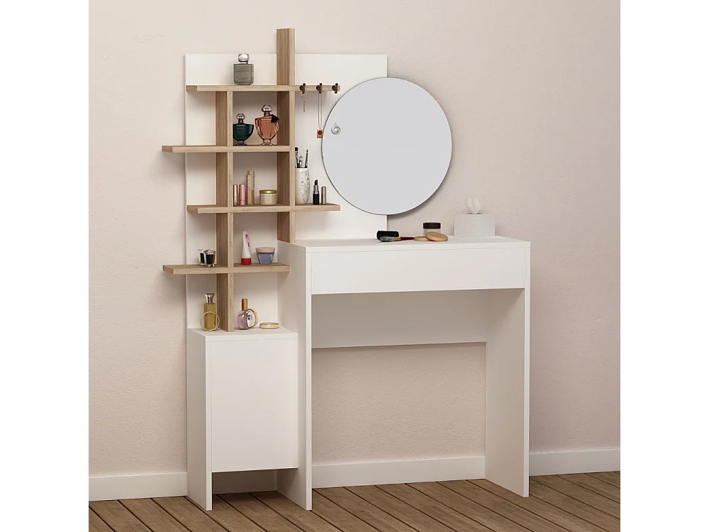 Toeletta trucco Mup bianca con vani a giorno colore rovere