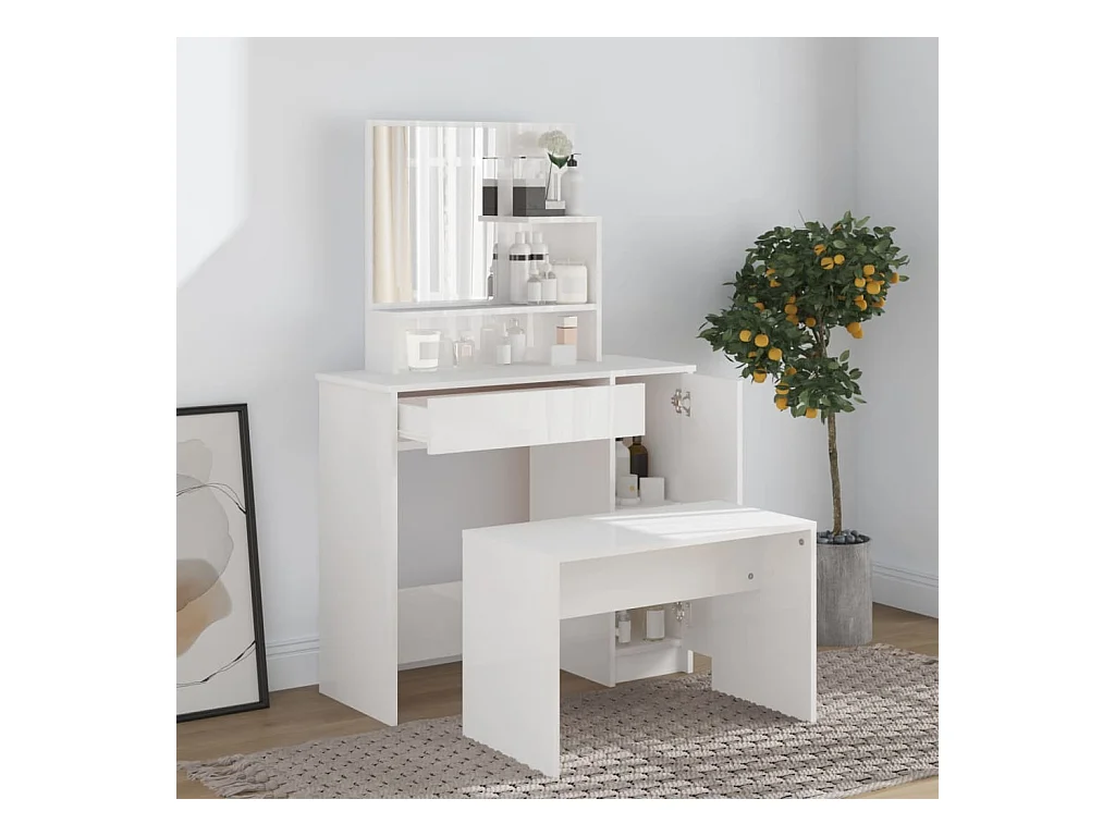 Toilette con specchio bianco lucido 86,5x35x136 cm