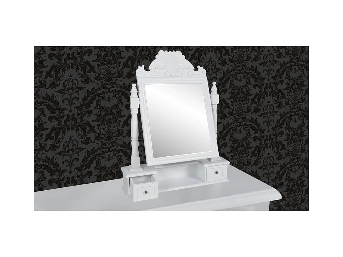 Toletta con specchio e sgabello 7 cassetti Bianco