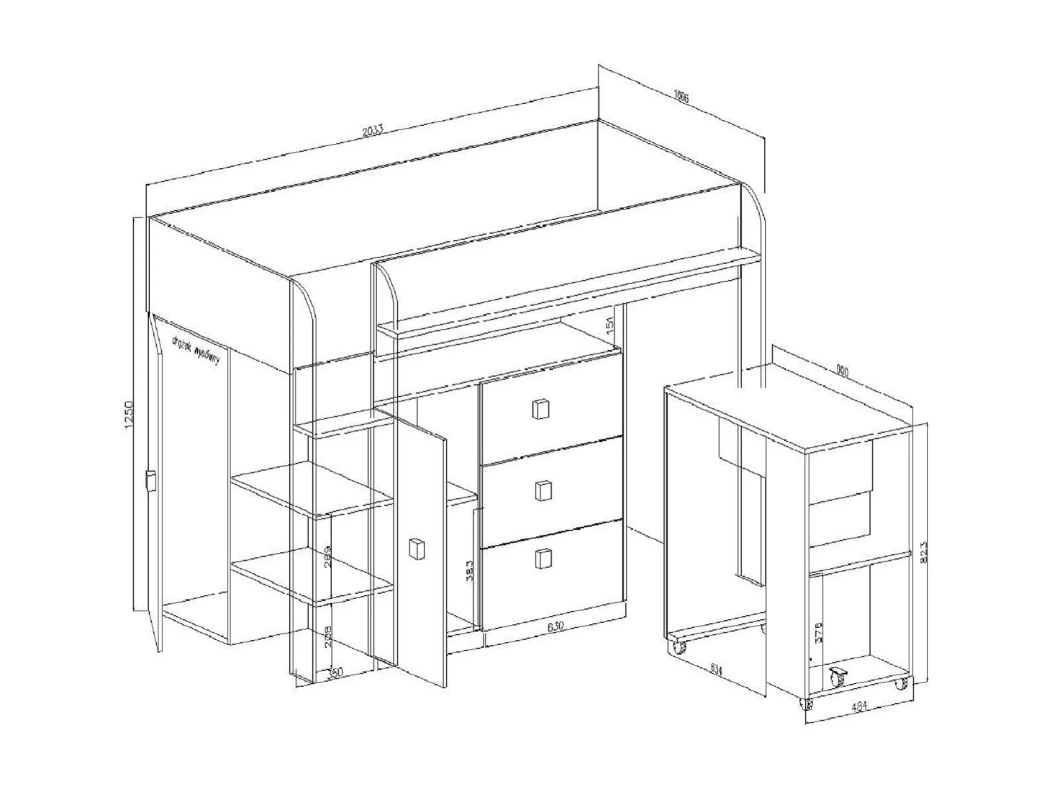 TOLEDO 1 letto a castello 203.3/106.6/125 (bianco/bianco/grigio)