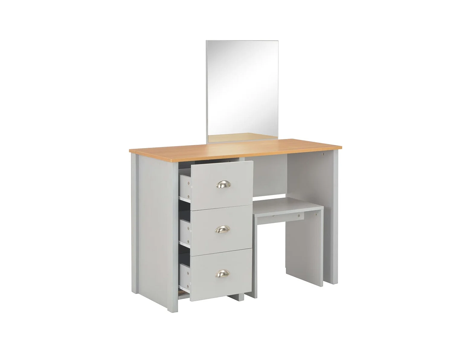 Toletta con specchio e sgabello Grigio 104x45x131 cm