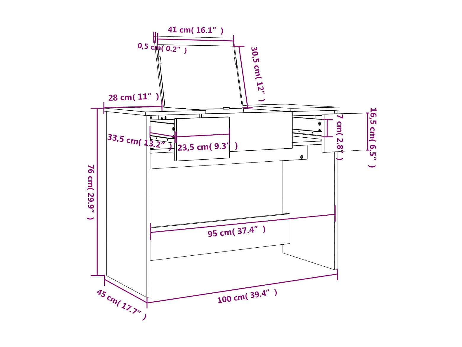 Toeletta con specchio rovere sonoma 100x45x76 cm