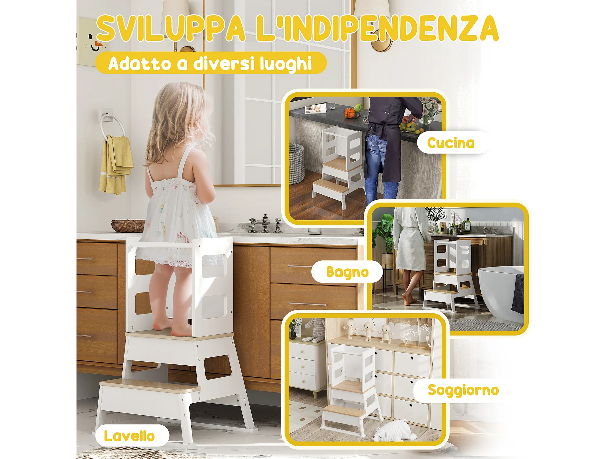 Scala montessori per bambini regolabile su 3 livelli in legno bianco
