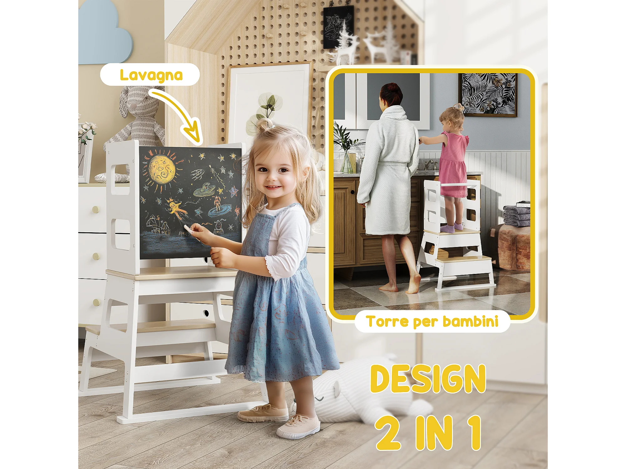 Scala montessori 2 in 1 bambini 3-6 anni con lavagna bianco