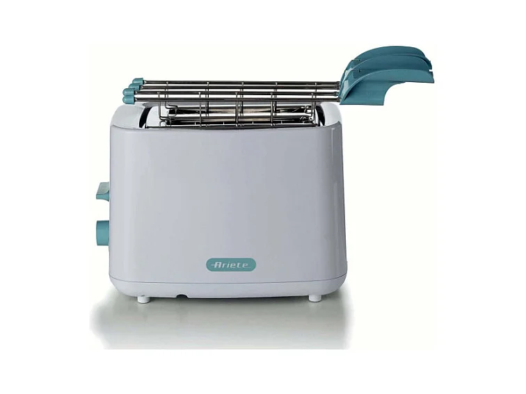 Tostapane 760W, capacità 2 fette di pane, 7 livelli di doratura, pinze inox - White & Aegean Teal