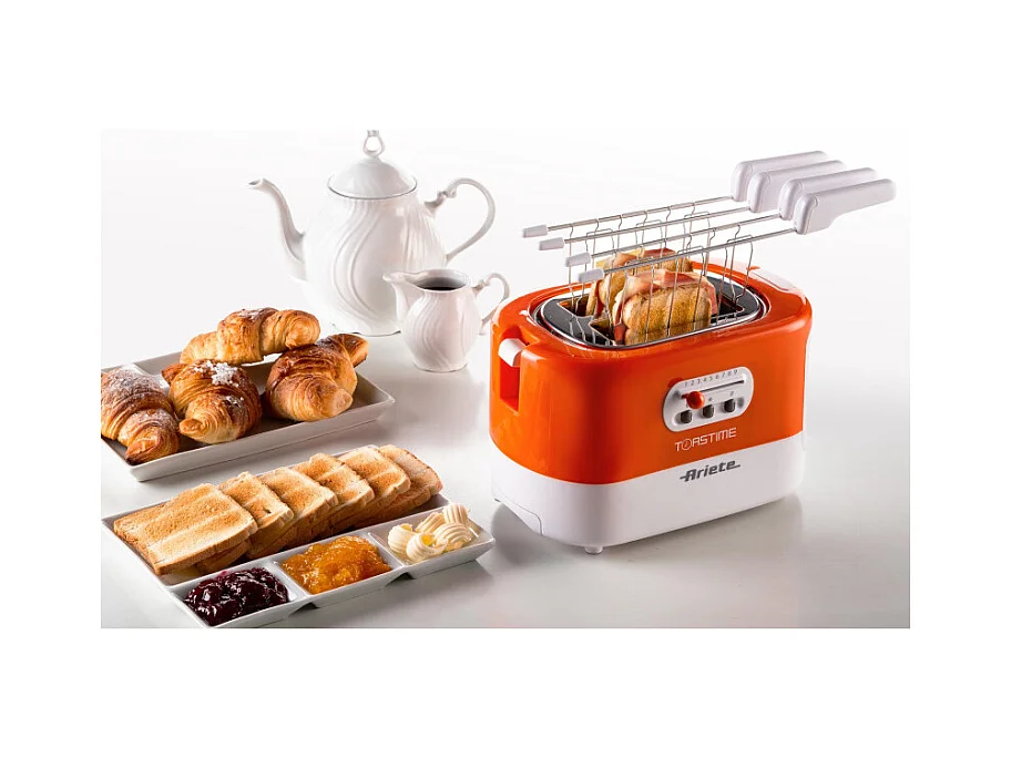 Tostapane con Pinze per 2 fette - 9 Gradi di Doratura - 700 Watt - Bianco e Arancio