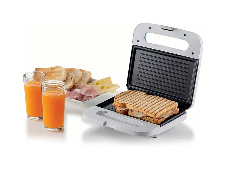 Tostiera per toast, sandwich e panini 750W, piastre fisse grill, rivestimento antiaderente - White & Aegean Teal
