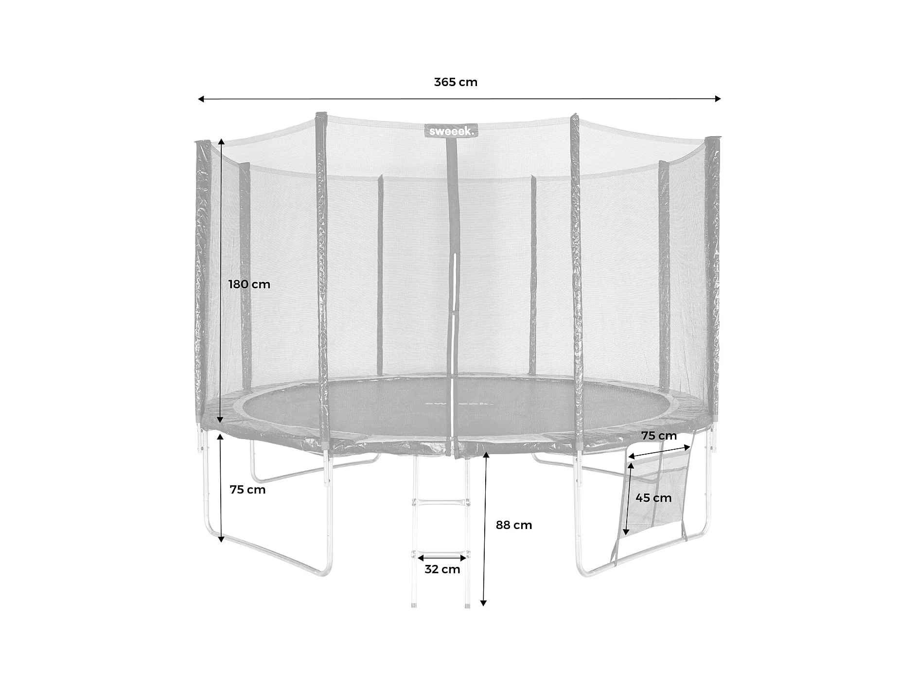 Trampolino 370cm con rete interna e pacchetto accessori, grigio