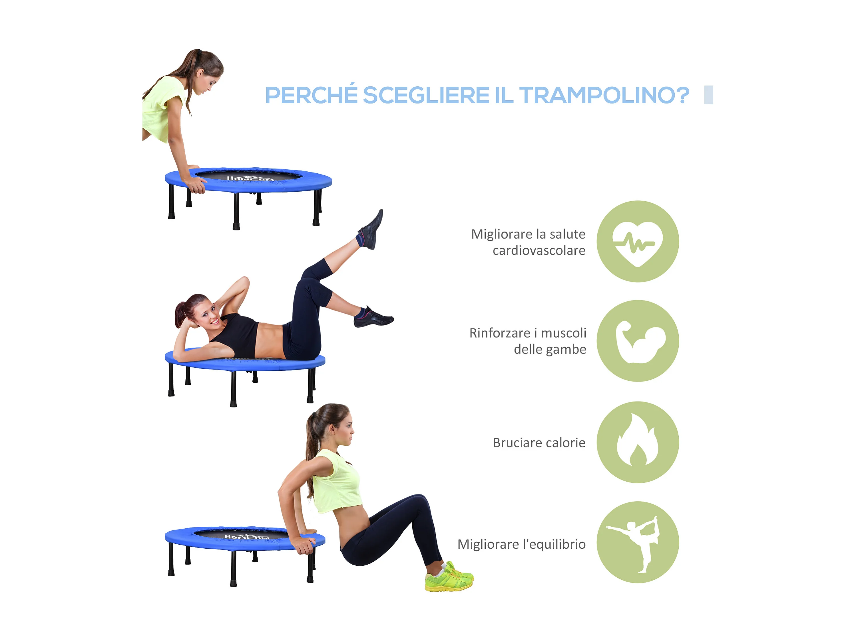 Trampolino fitness pieghevole 102 cm con manubrio regolabile blu