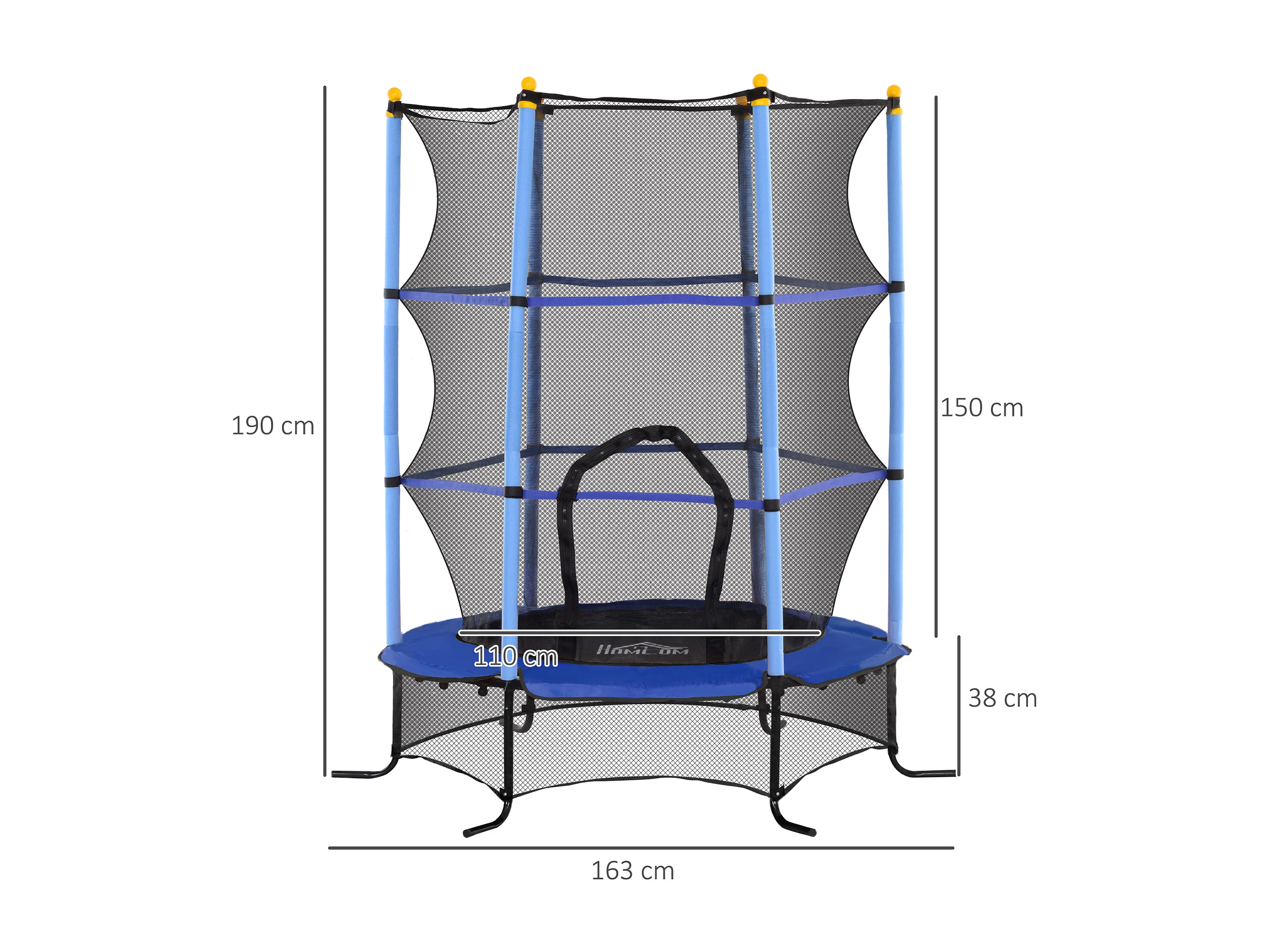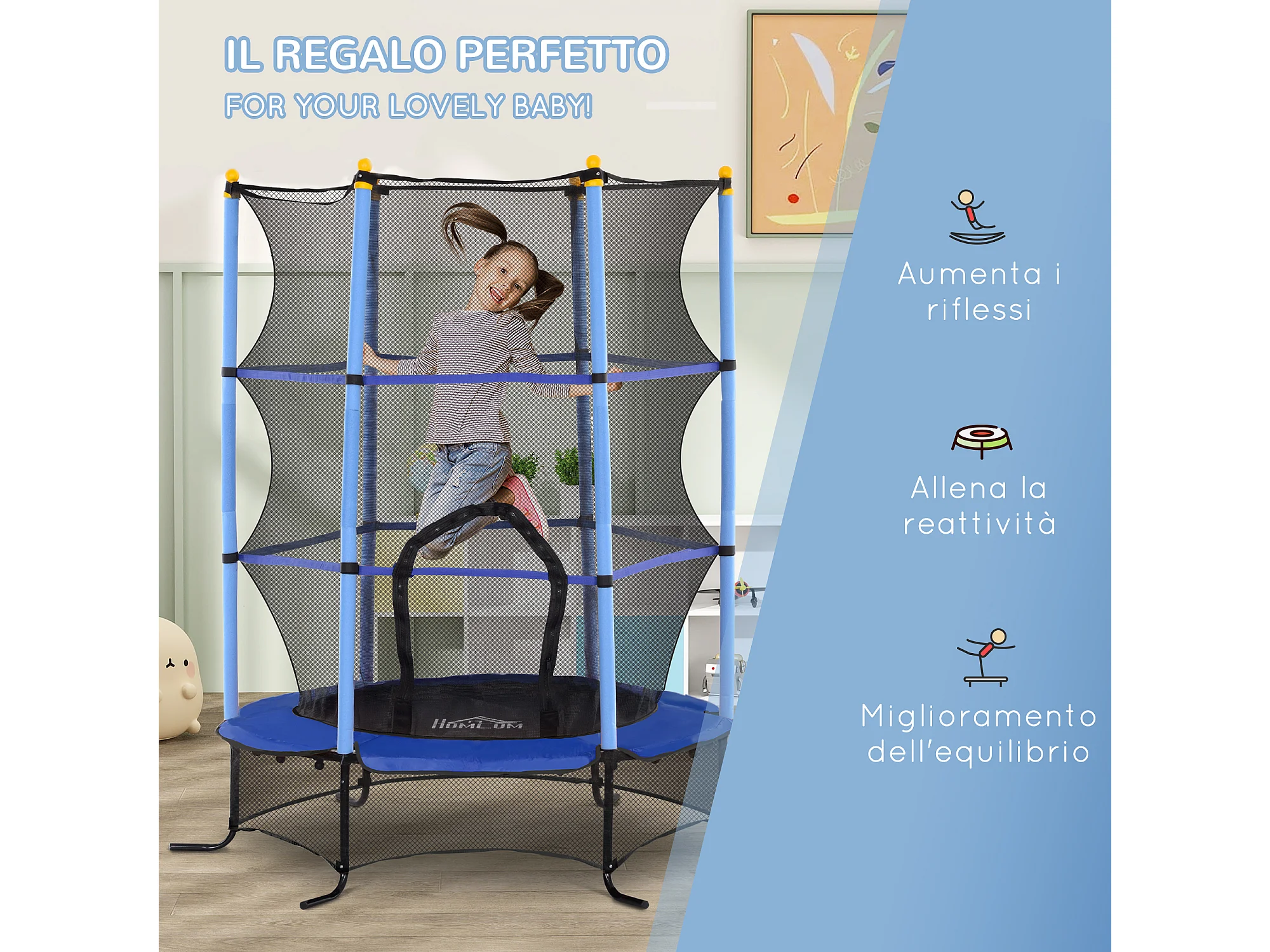 Trampolino elastico per bambini 3-10 anni con rete di sicurezza blu