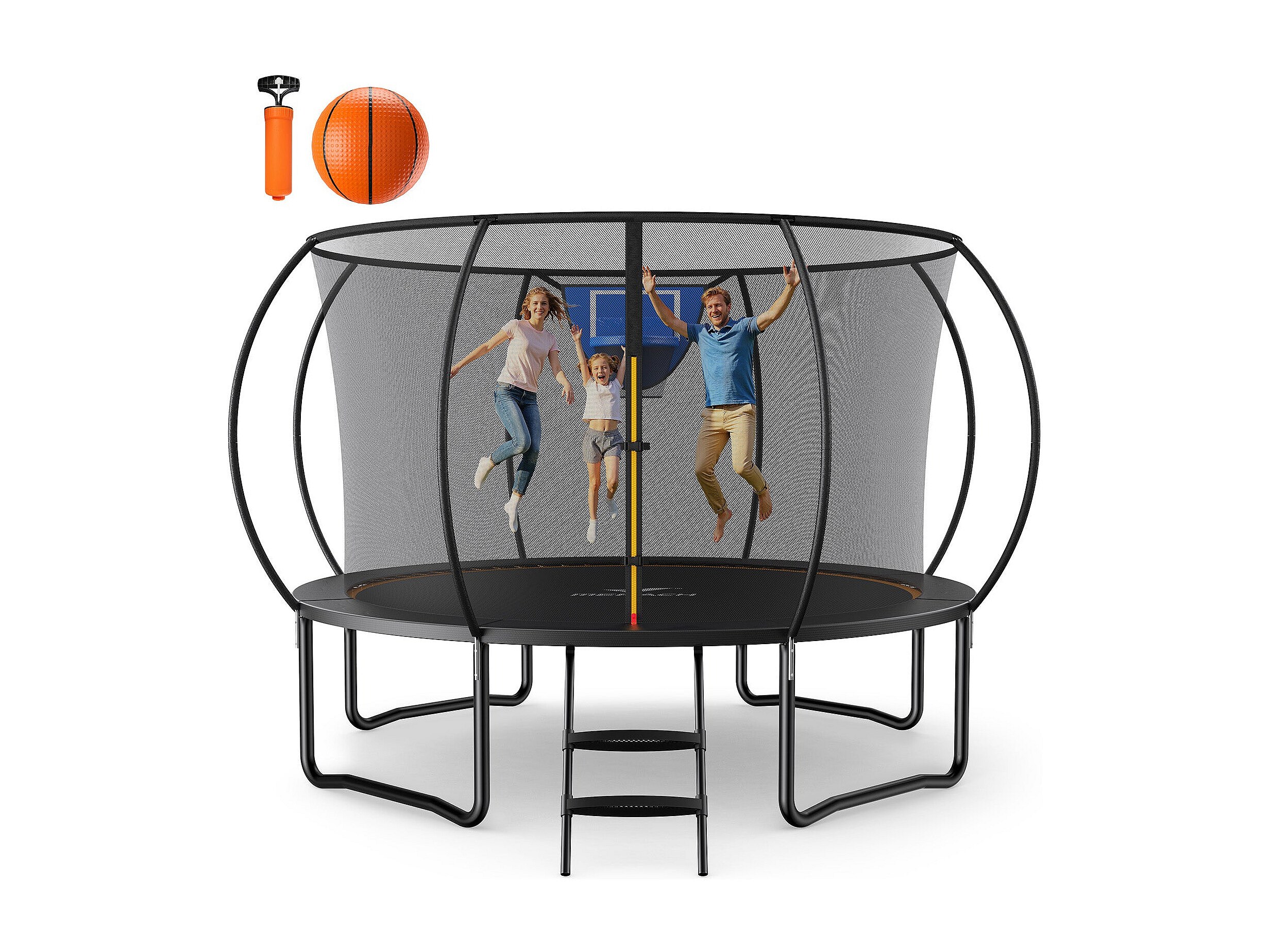 Trampolino esterno MERACH, Ø 366 cm, sicurezza rinforzata con rete, gioco all’aperto, telaio zincato, carico fino a 150 kg