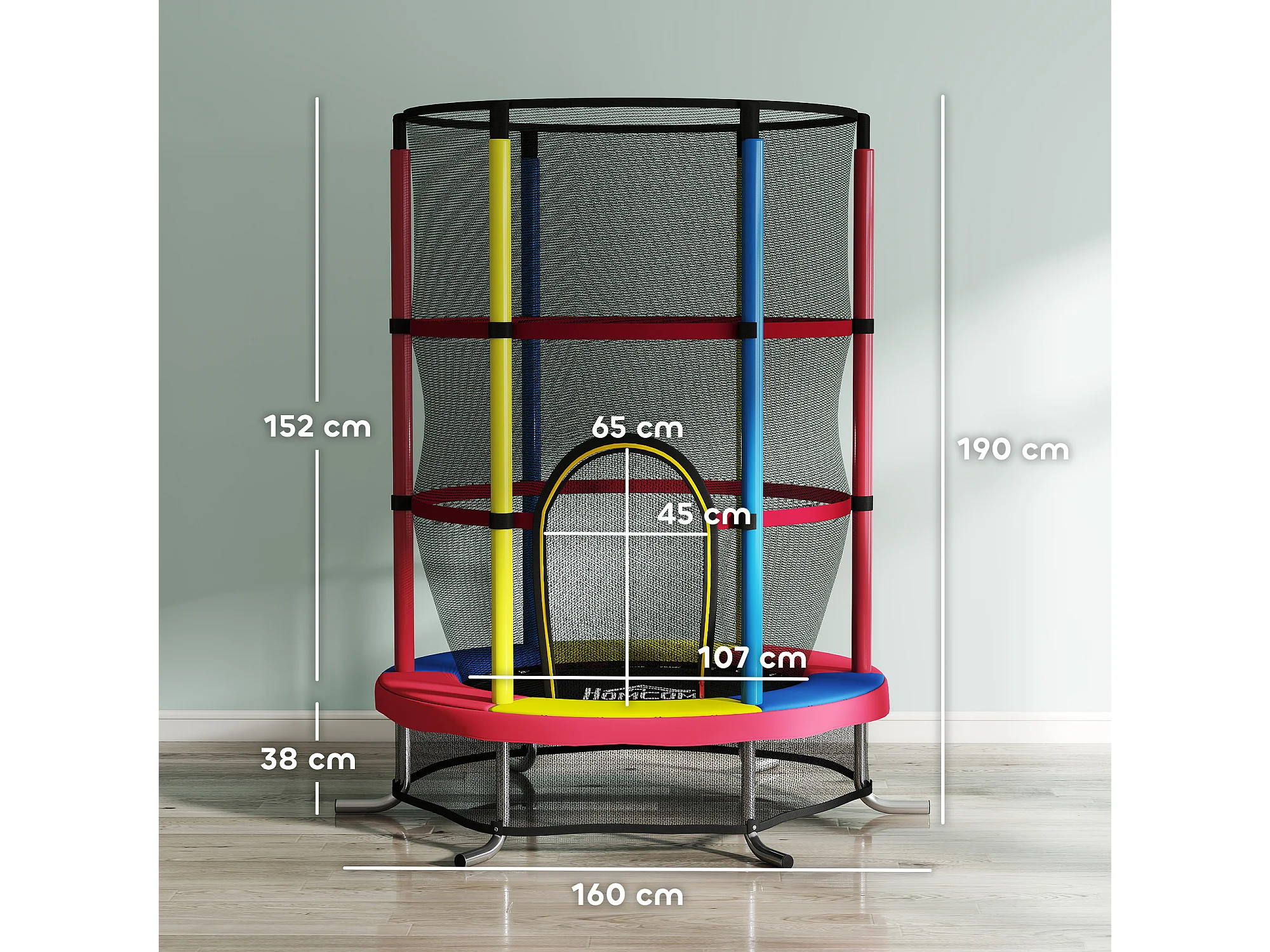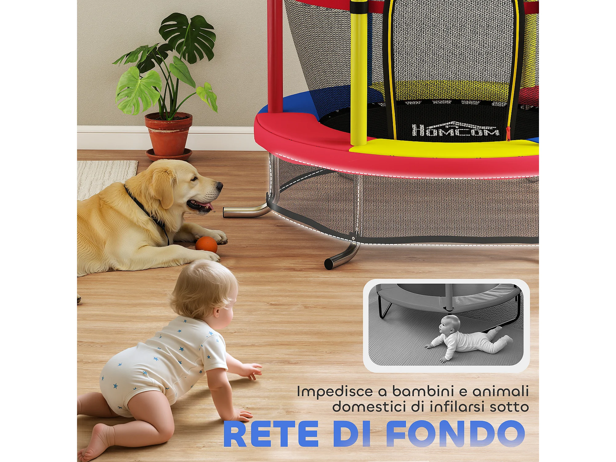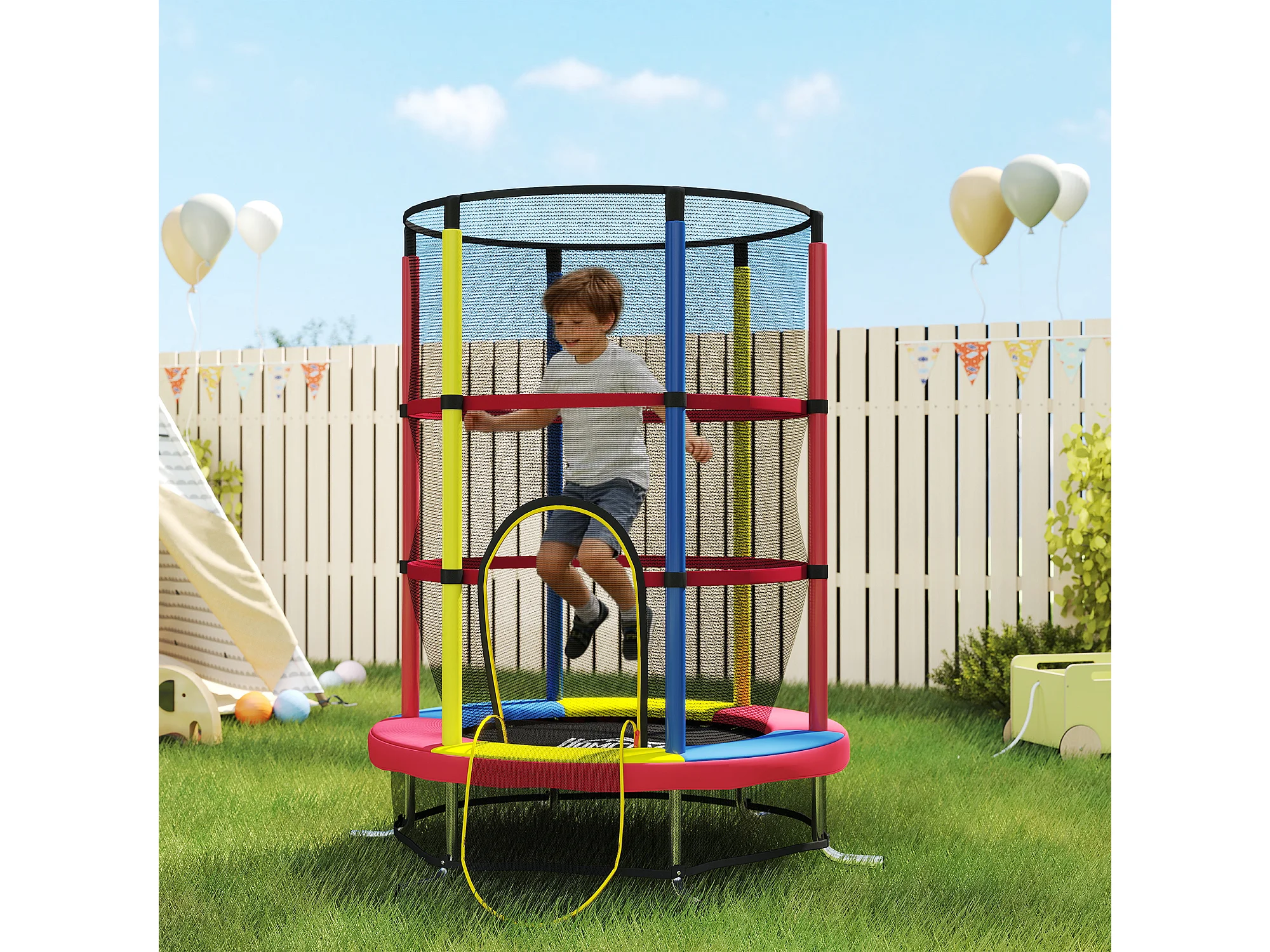 Trampolino per bambini 3-6 anni con rete di sicurezza multicolore
