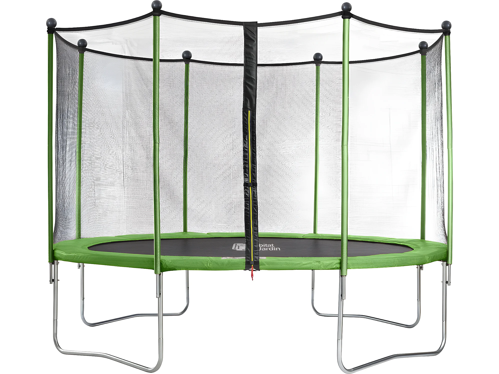 Trampolino Yoopi 2 LUXE con rete di protezione, scala e copertura - Ø 3,65 m - Sicurezza e qualità eccezionali per i vostri bambini