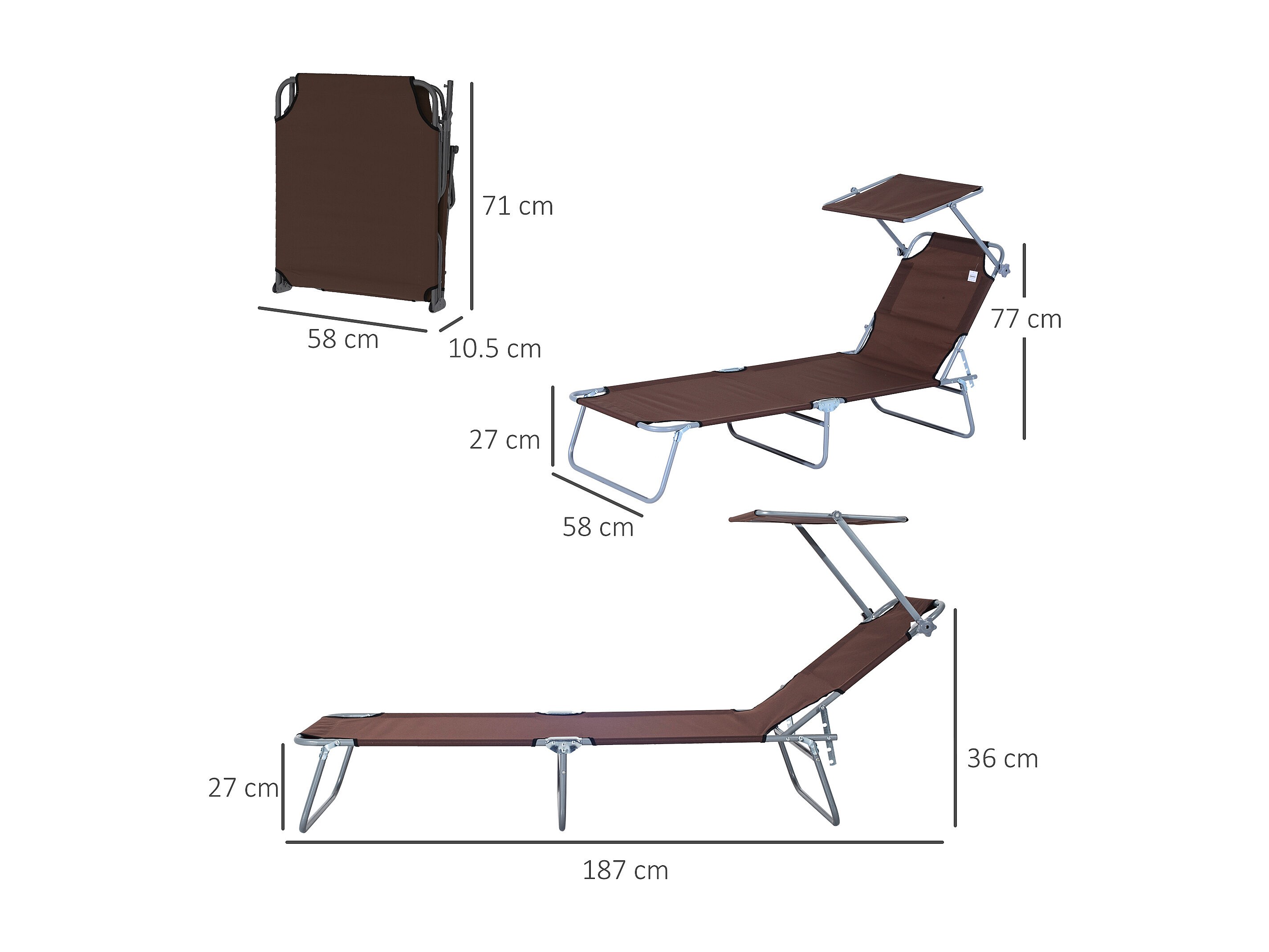 Transat pliable con pare‑soleil 187x58x36 cm, chaise longue terrasse e balcone, marrone