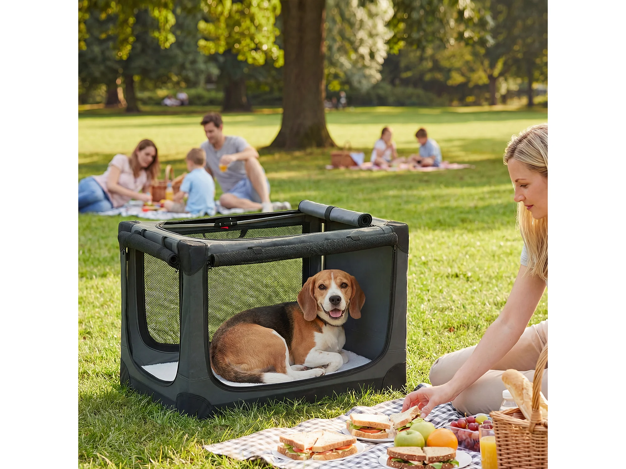 Trasportino morbido per cani pieghevole con cuscino in oxford verde