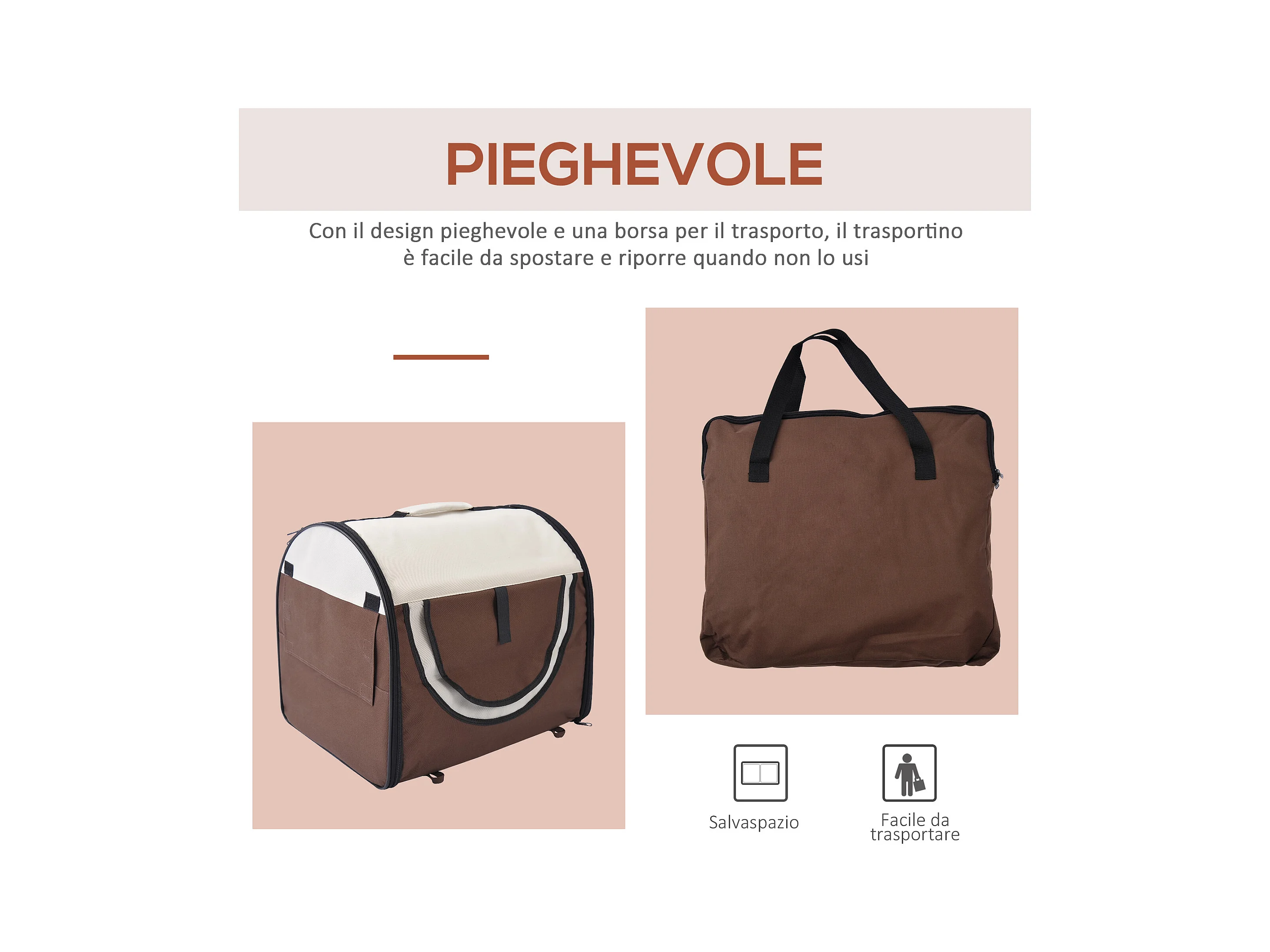 Trasportino per cani e gatti pieghevole e imbottito 61x46x51cm caffè