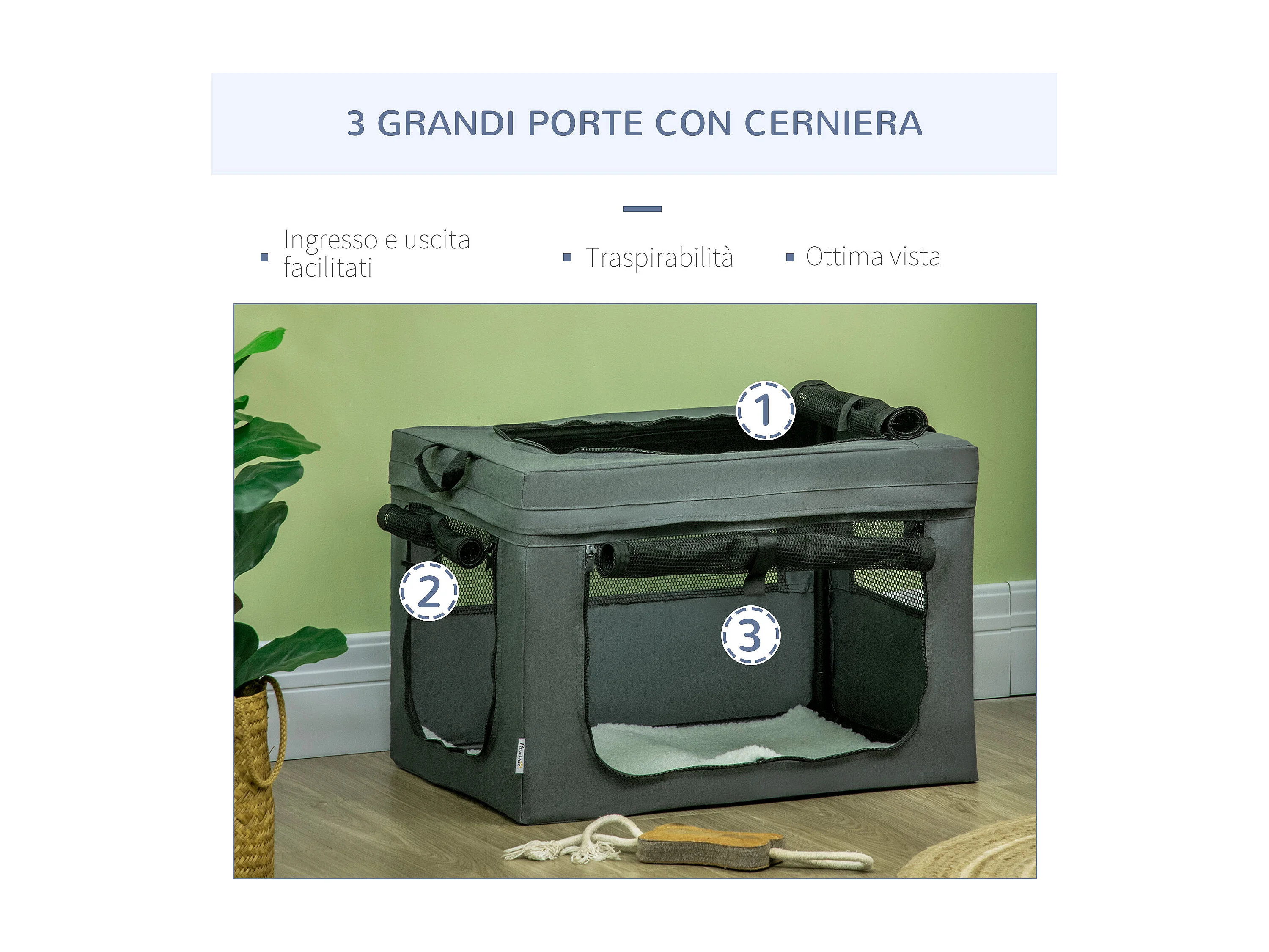 Trasportino per cani mini e gatti con cuscino rimovibile grigio