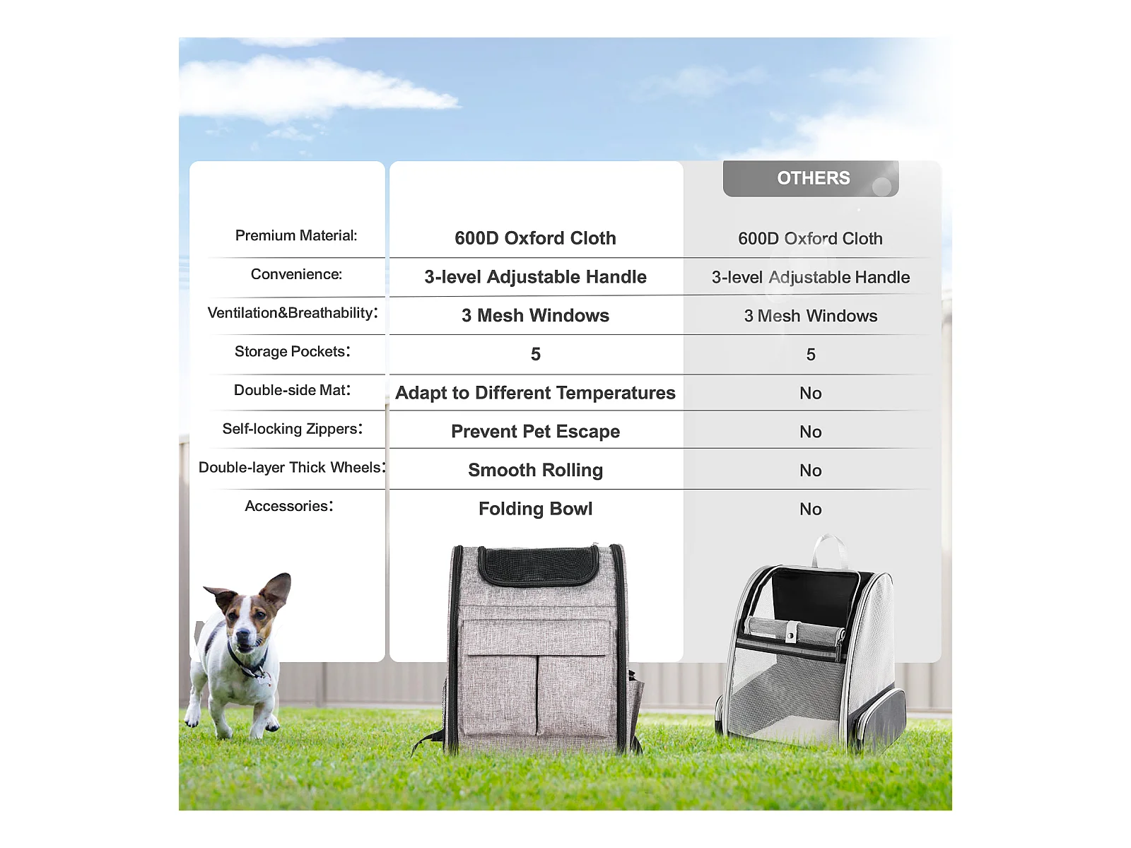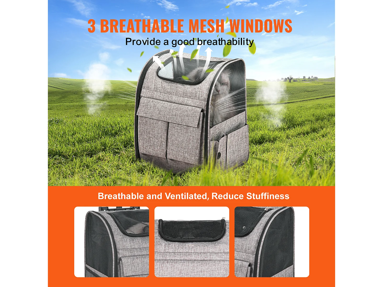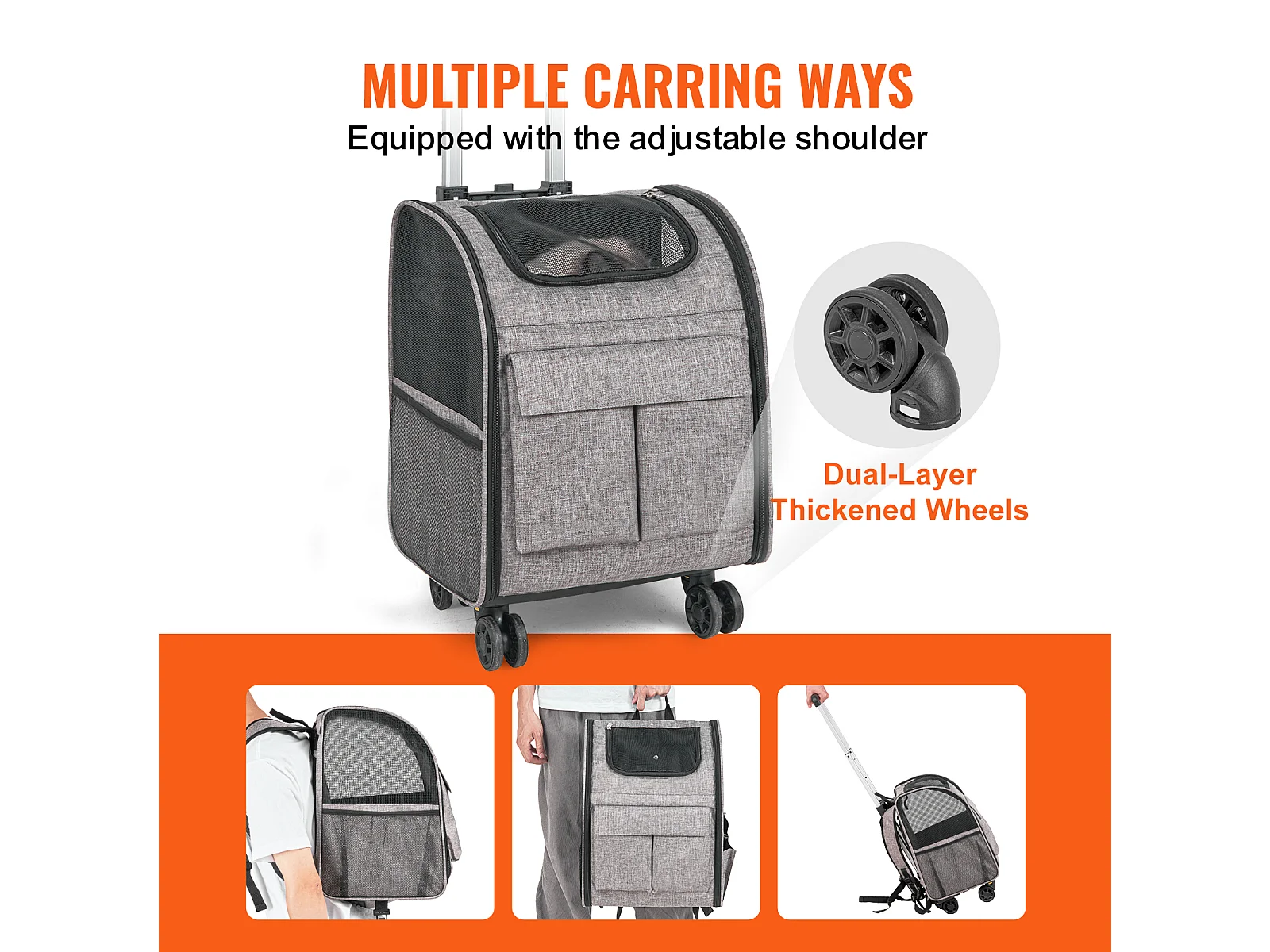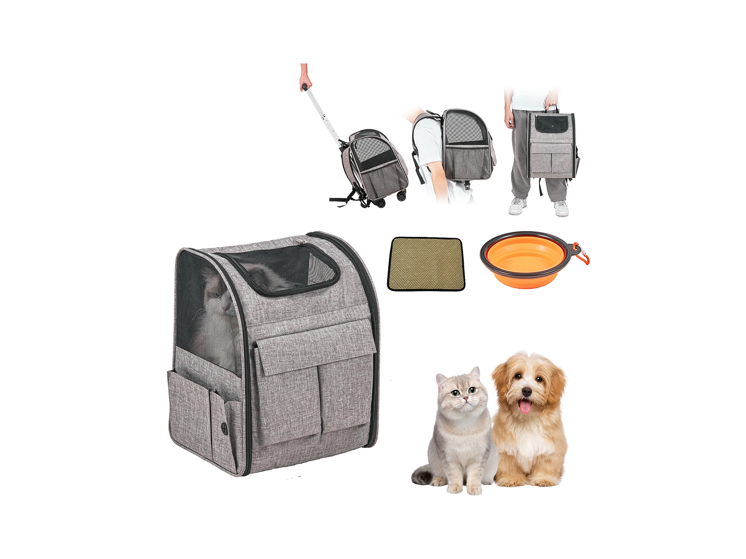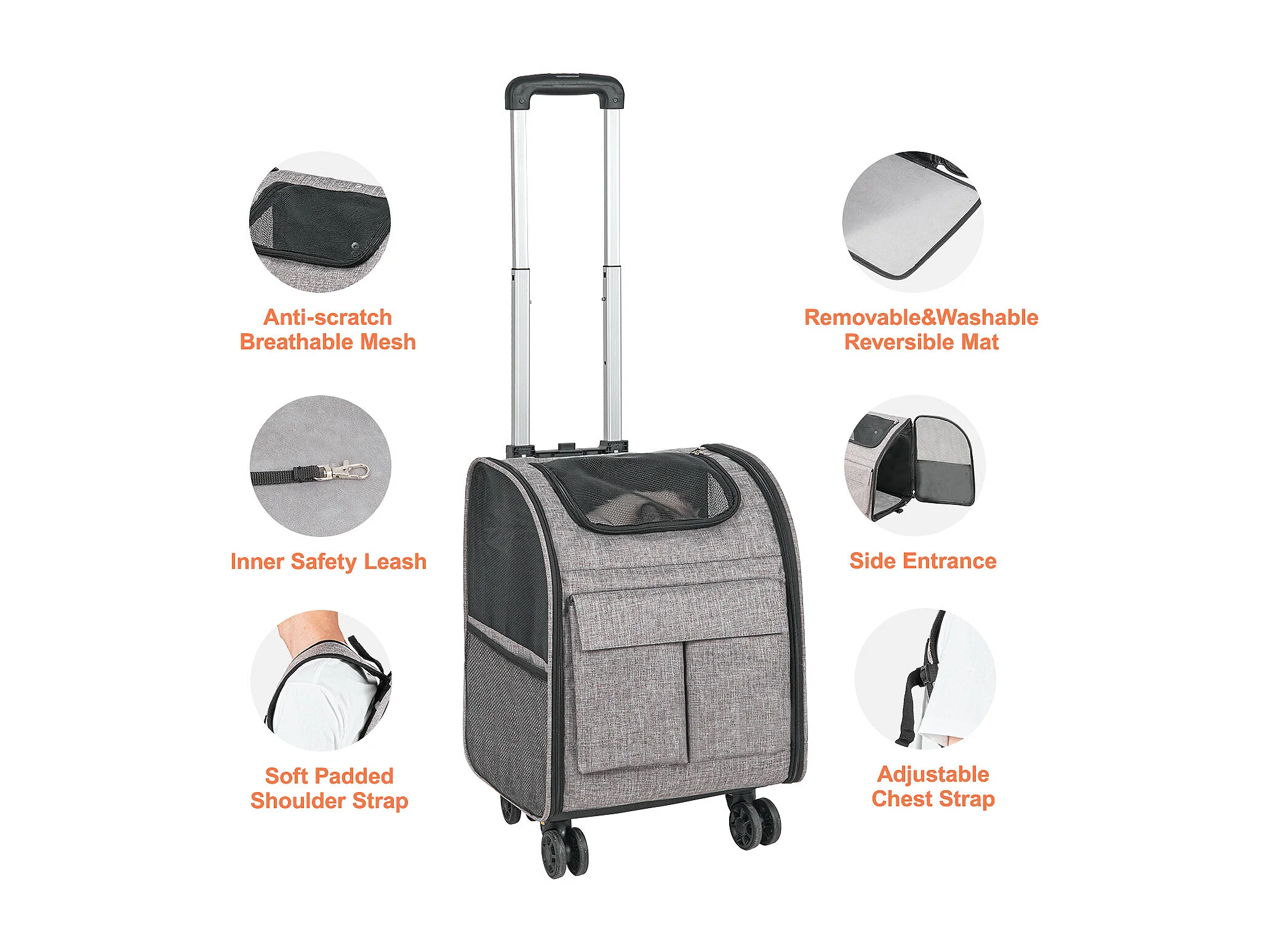 Trasportino per Gatti SucceBuy con Ruote,Trasportino per Animali Domestici con Ruote, 18 libbre, Grigio