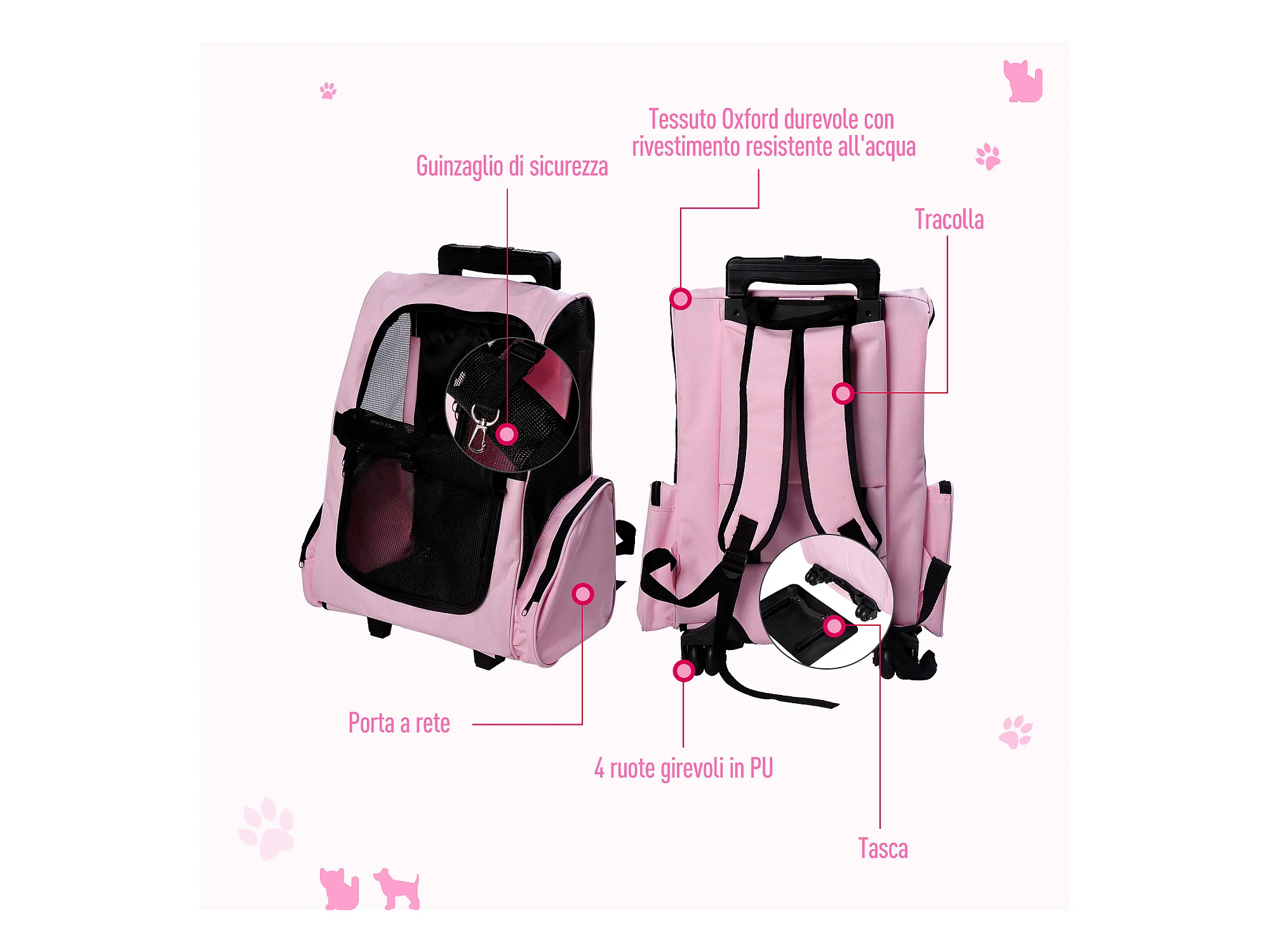 Trasportino zaino per cani e gatti con tasche maniglia telescopica ruote