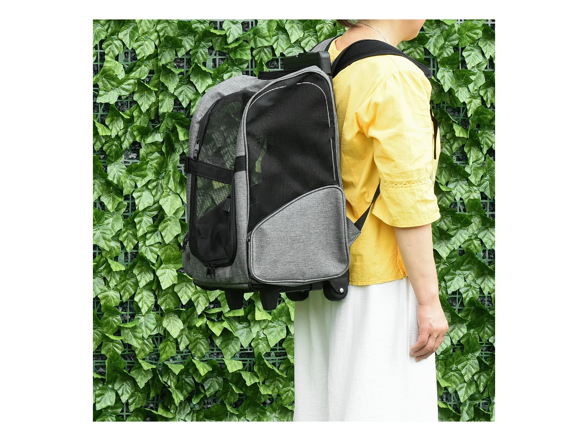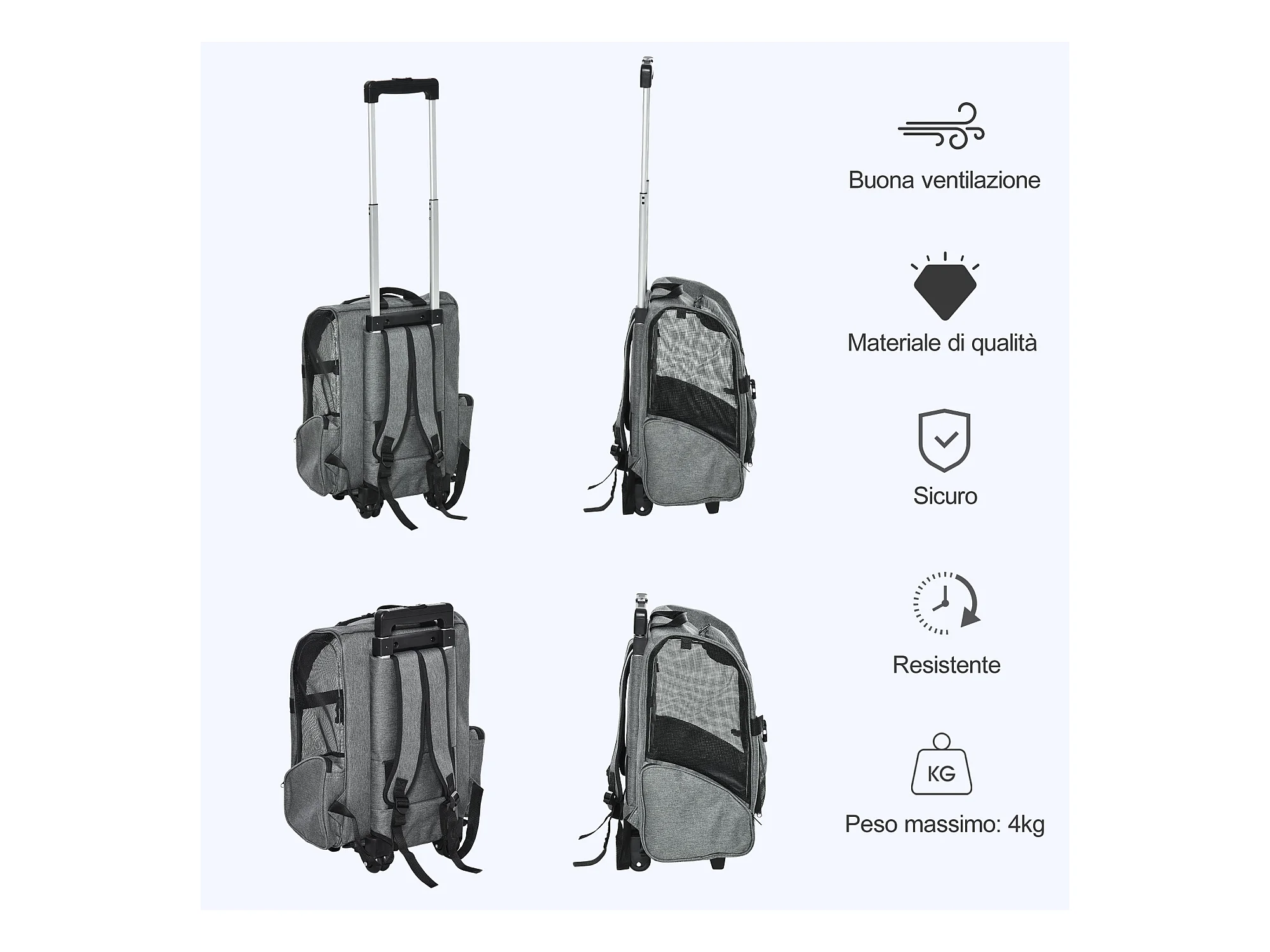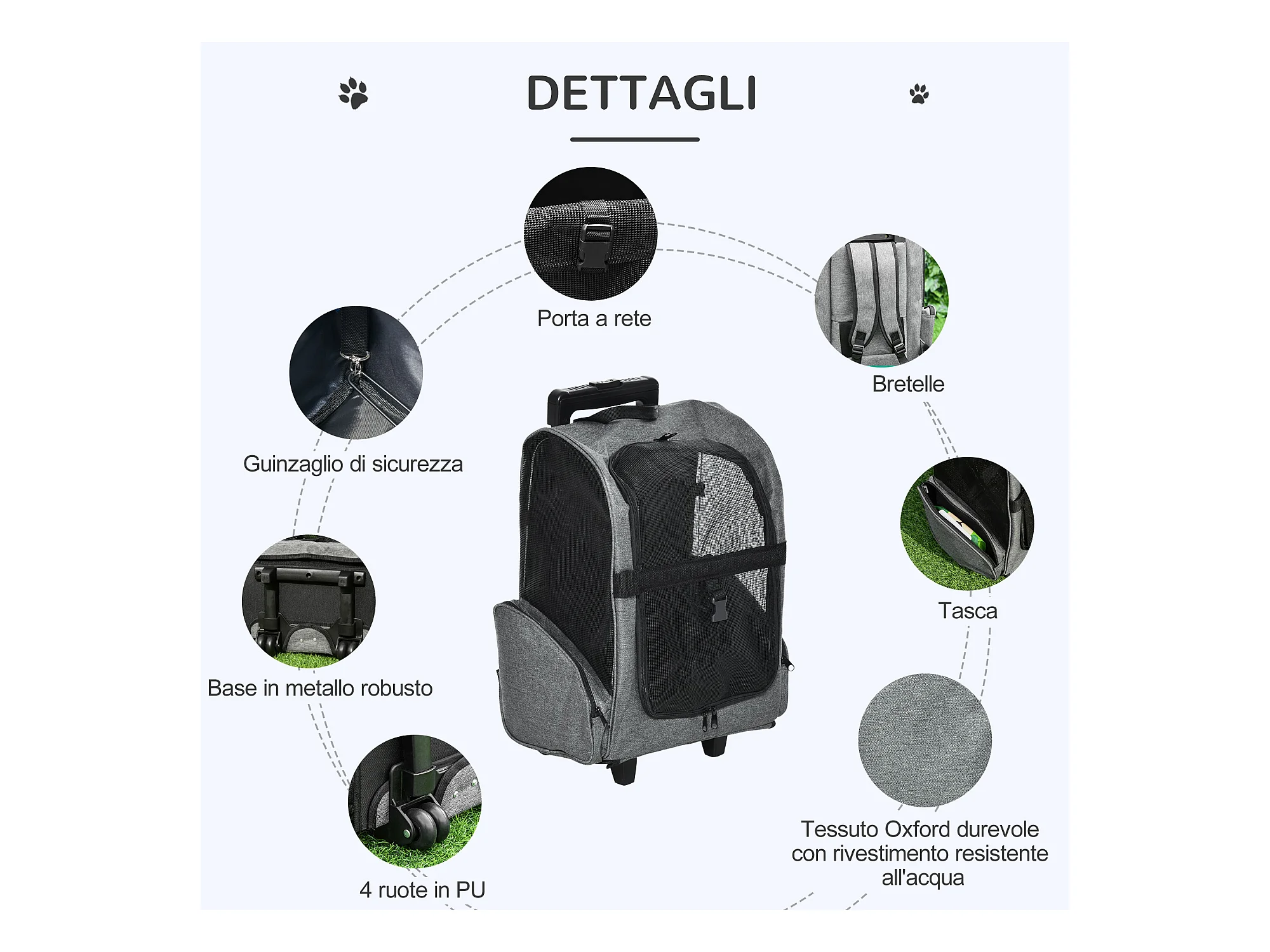 Trasportino zaino per cani e gatti con tasche maniglia telescopica ruote