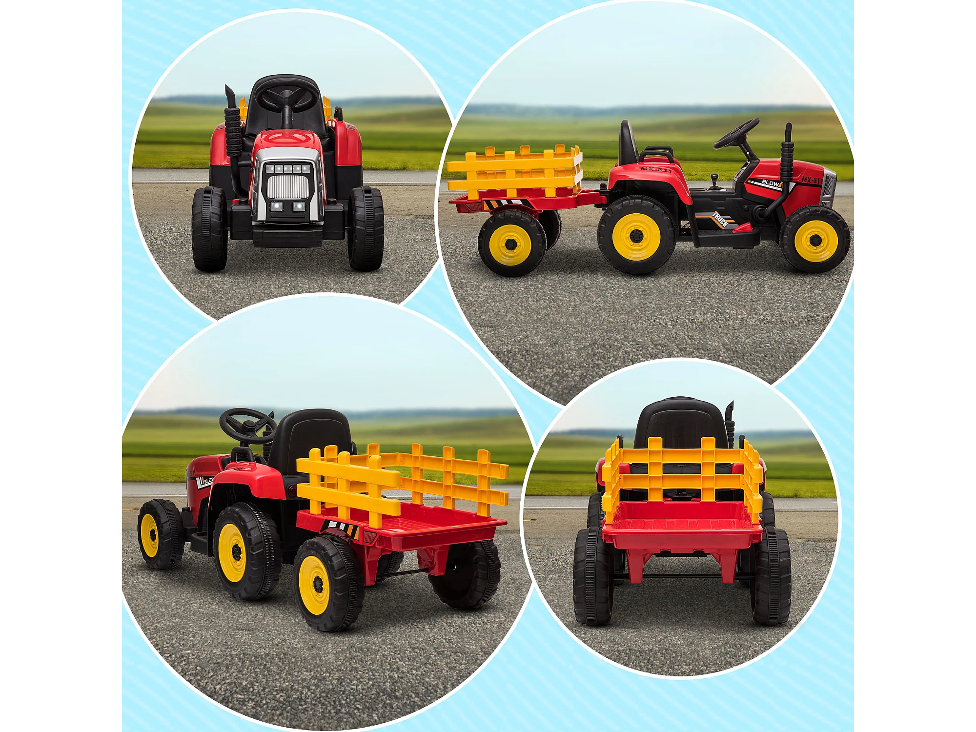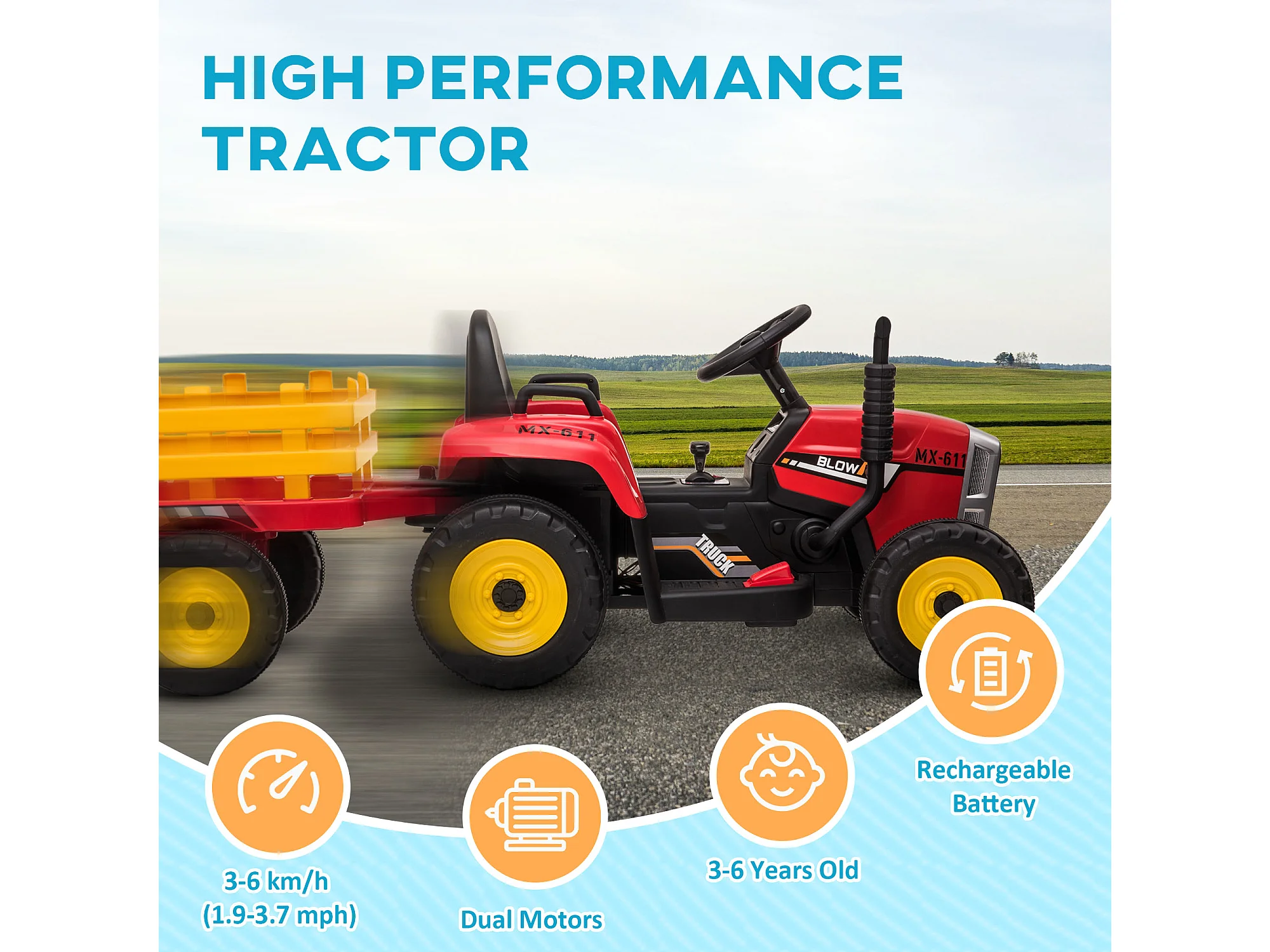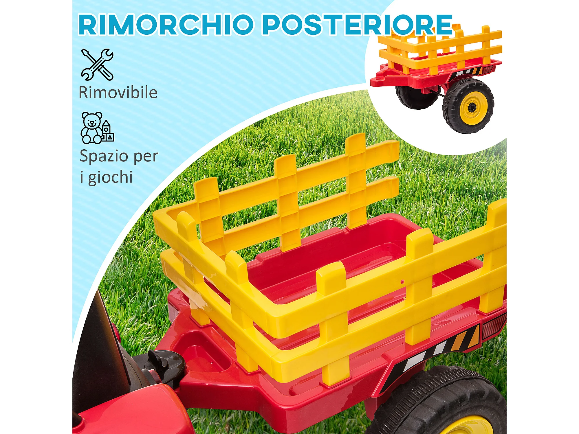 Trattore per bambini 12v con rimorchio e telecomando rosso