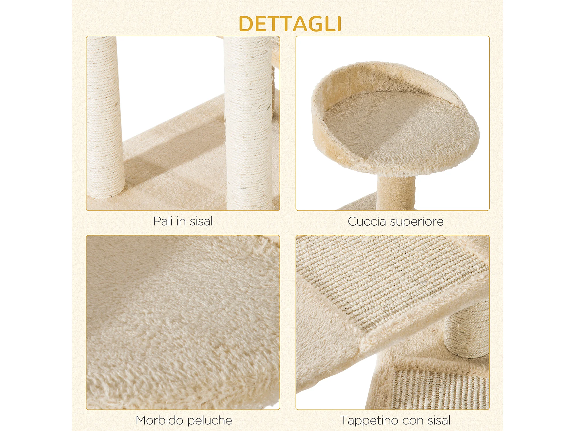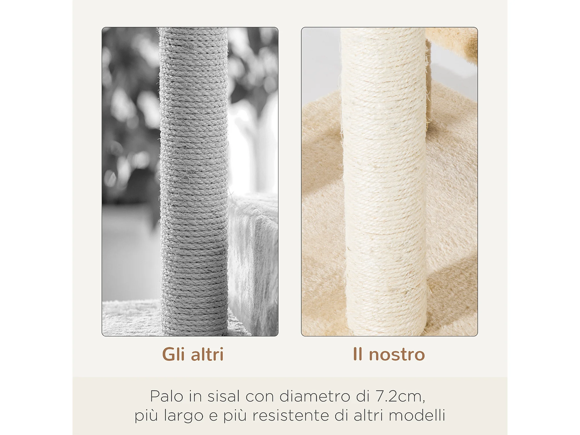 Trespolo per gatti multilivello tiragraffi in sisal e cuccia