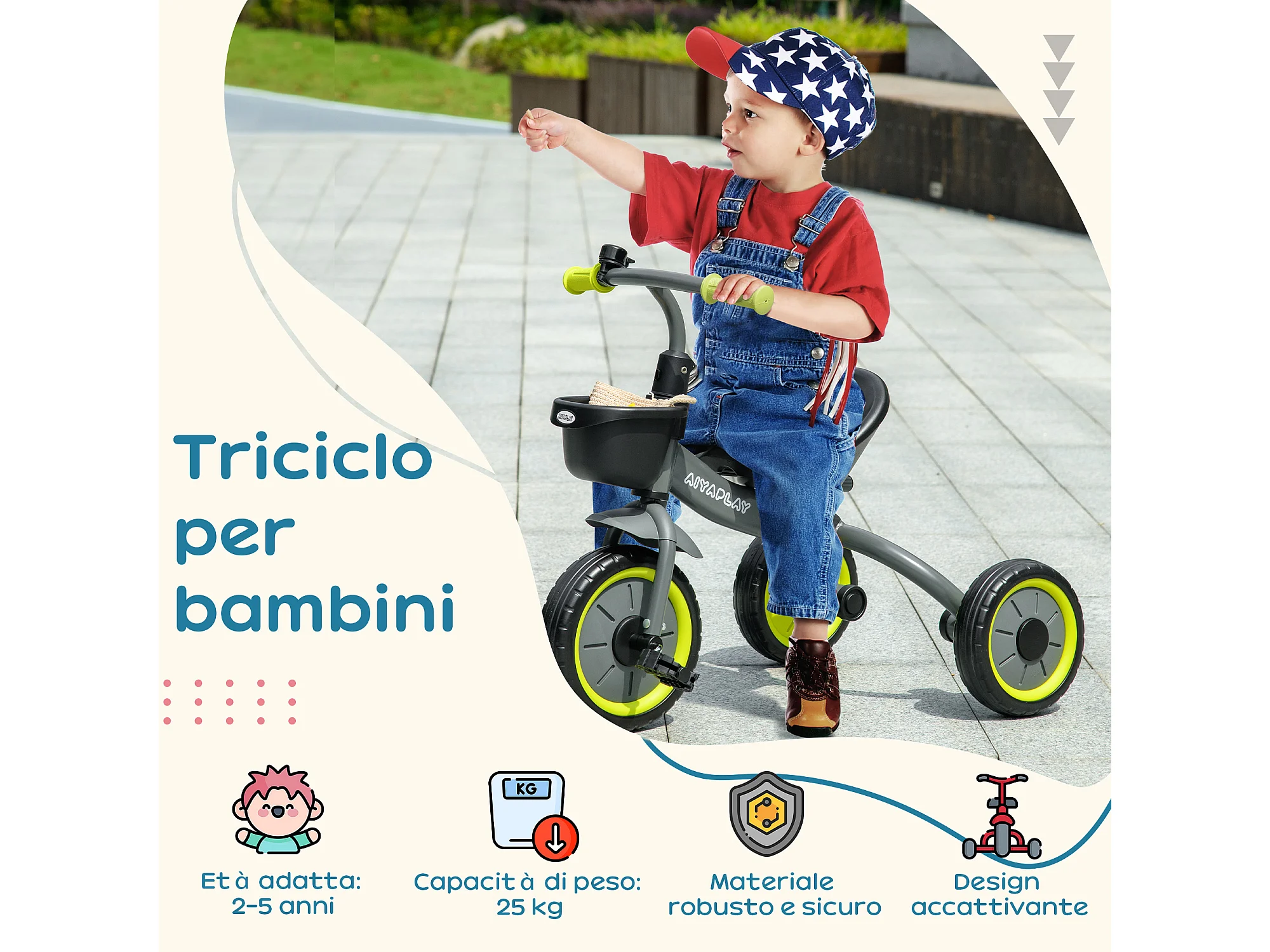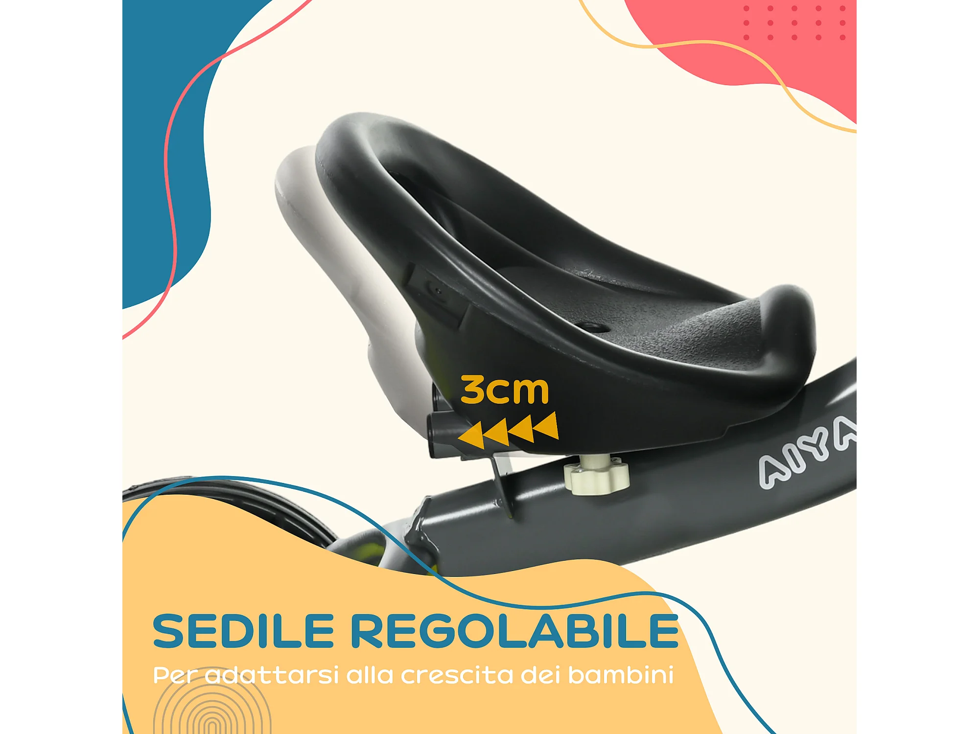 Triciclo per bimbi 2-5 anni regolabile con campanello nero