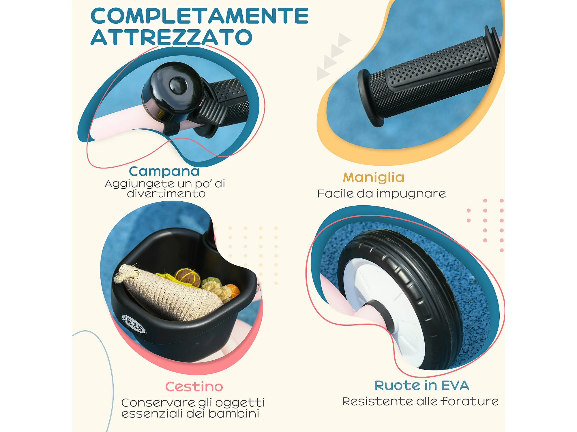 Triciclo per bimbi 2-5 anni regolabile con campanello rosa