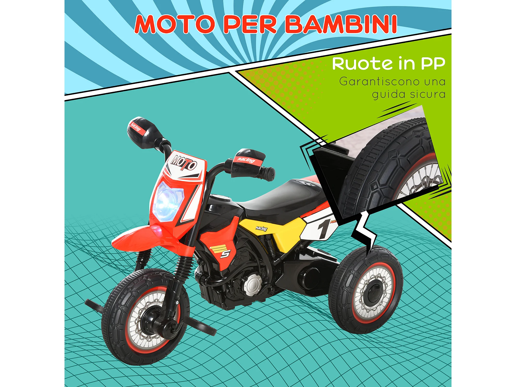 Moto elettrica per bambini 6v con rotelle e fari rossa