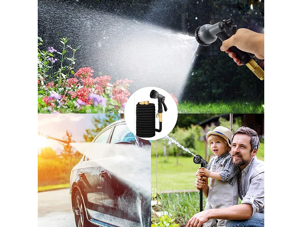 Tubo Da Giardino Estensibile Da 10 a 30 Metri Raccordi Ottone Massiccio Tubo Flessibile Per Acqua Valvola Di Arresto E Ugello Multifunzione 8 Funzioni