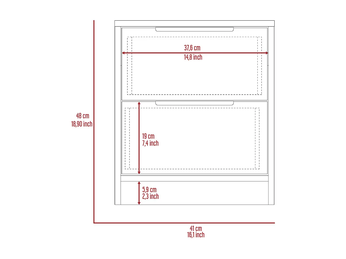 TUHOME Comodino Washington con Due Grandi Cassetti, Colore Bianco