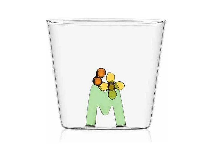 Tumbler in vetro borosilicato, M, trasparente 350 ml, Greenwood Alfabeto Fiorito
