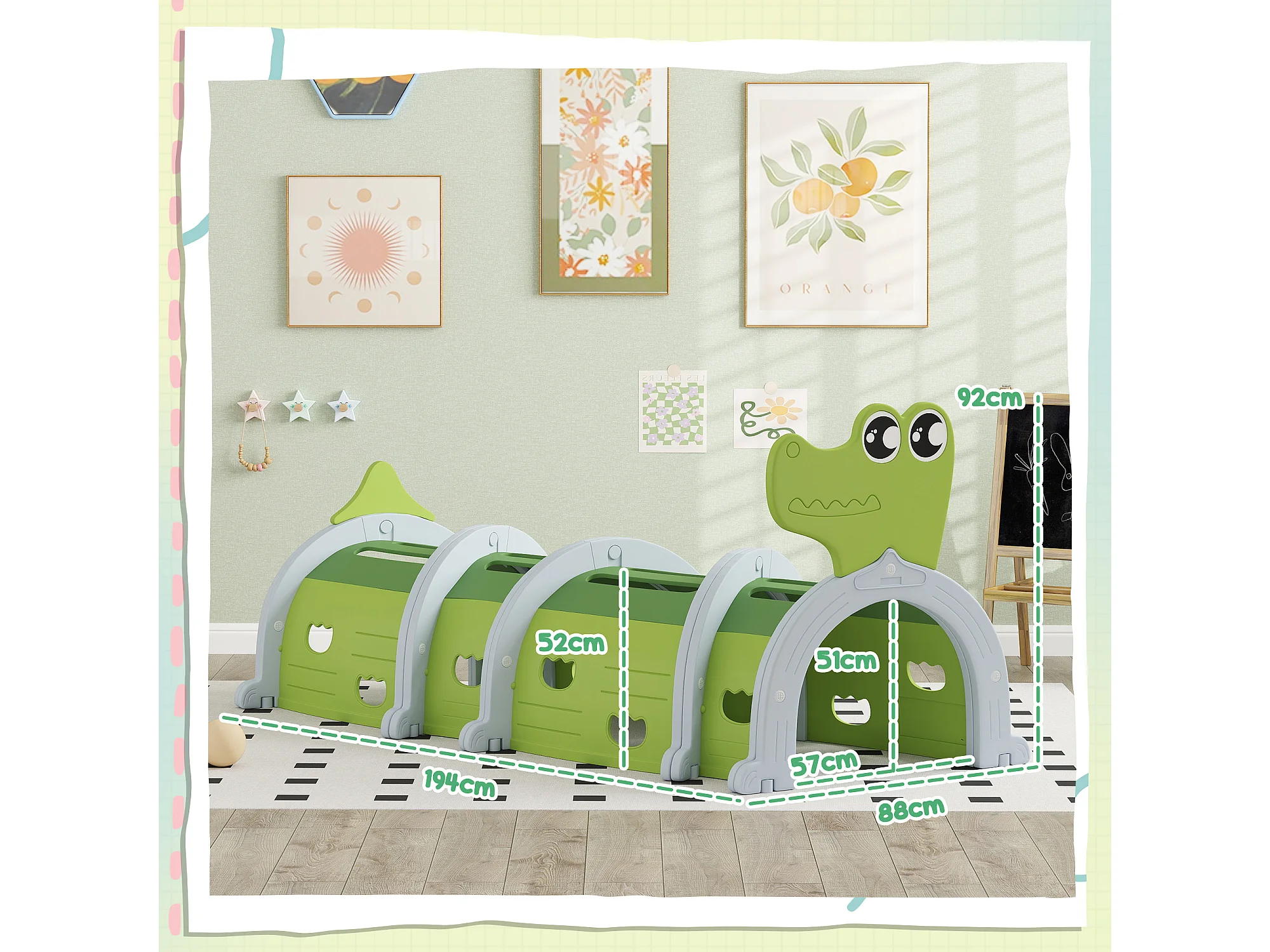Tunnel per bambini 3-6 anni a coccodrillo in plastica verde