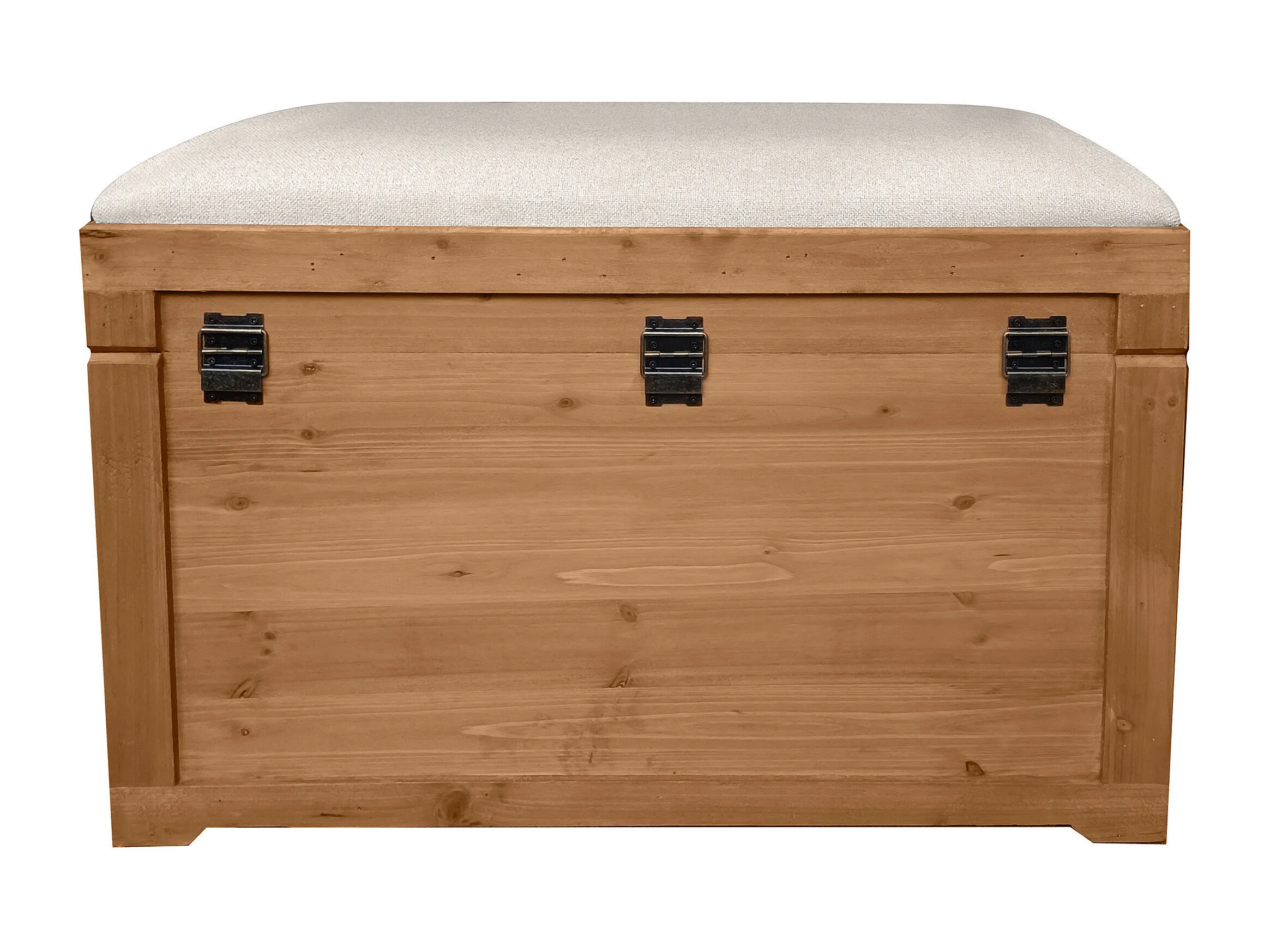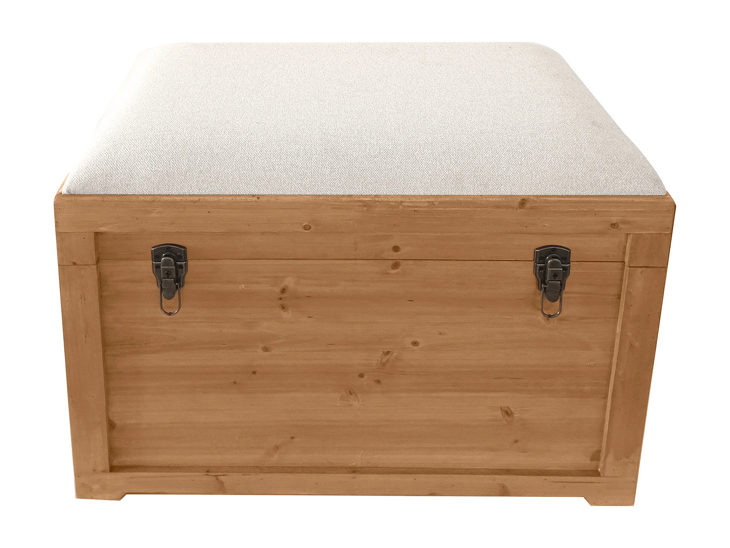 Cassapanca con cuscino in lino L. 80 x P. 40 x H. 53 cm Naturale e Beige - TURZA