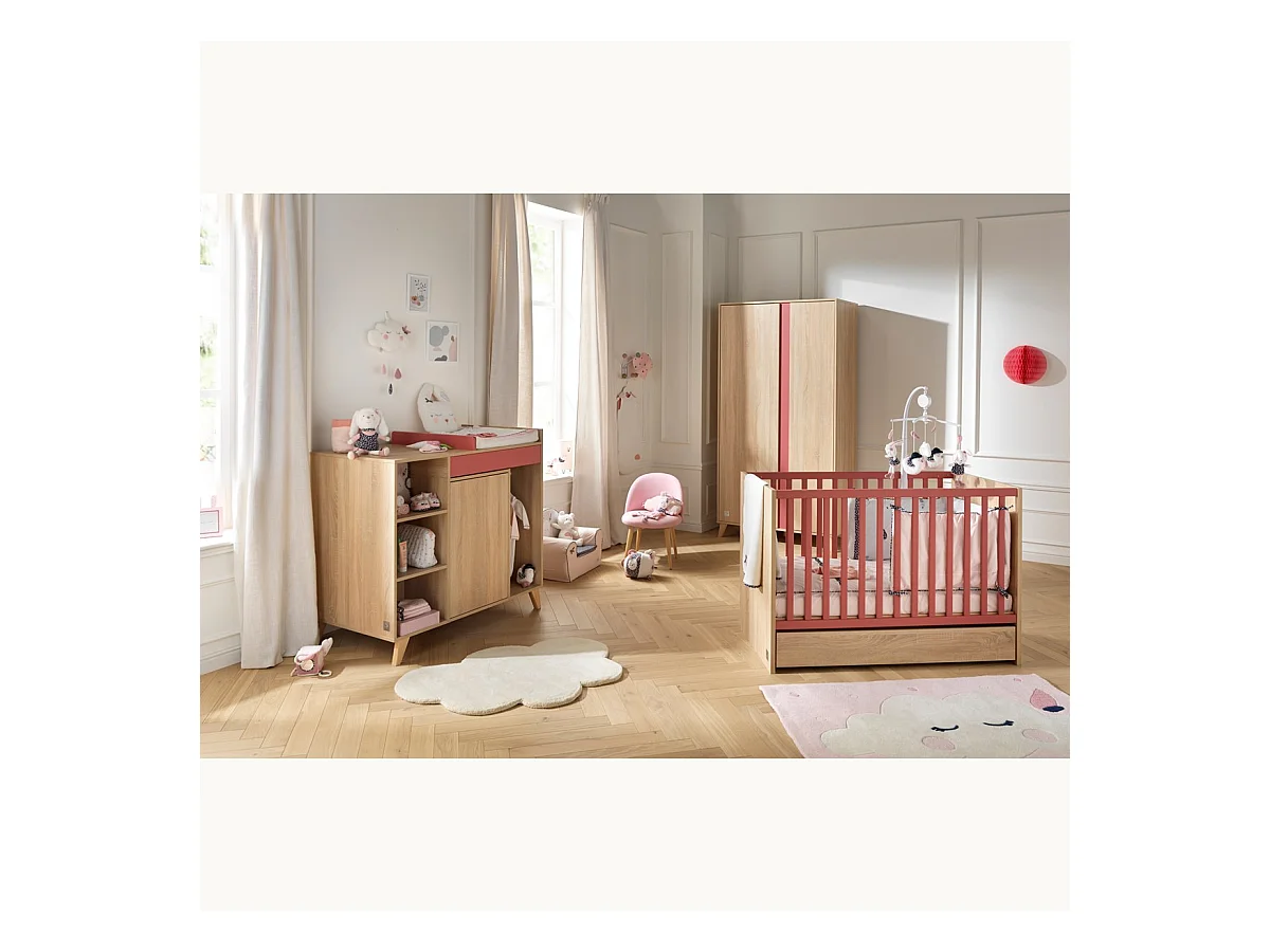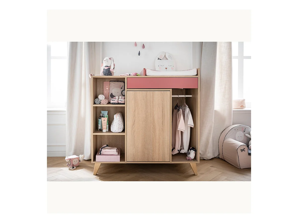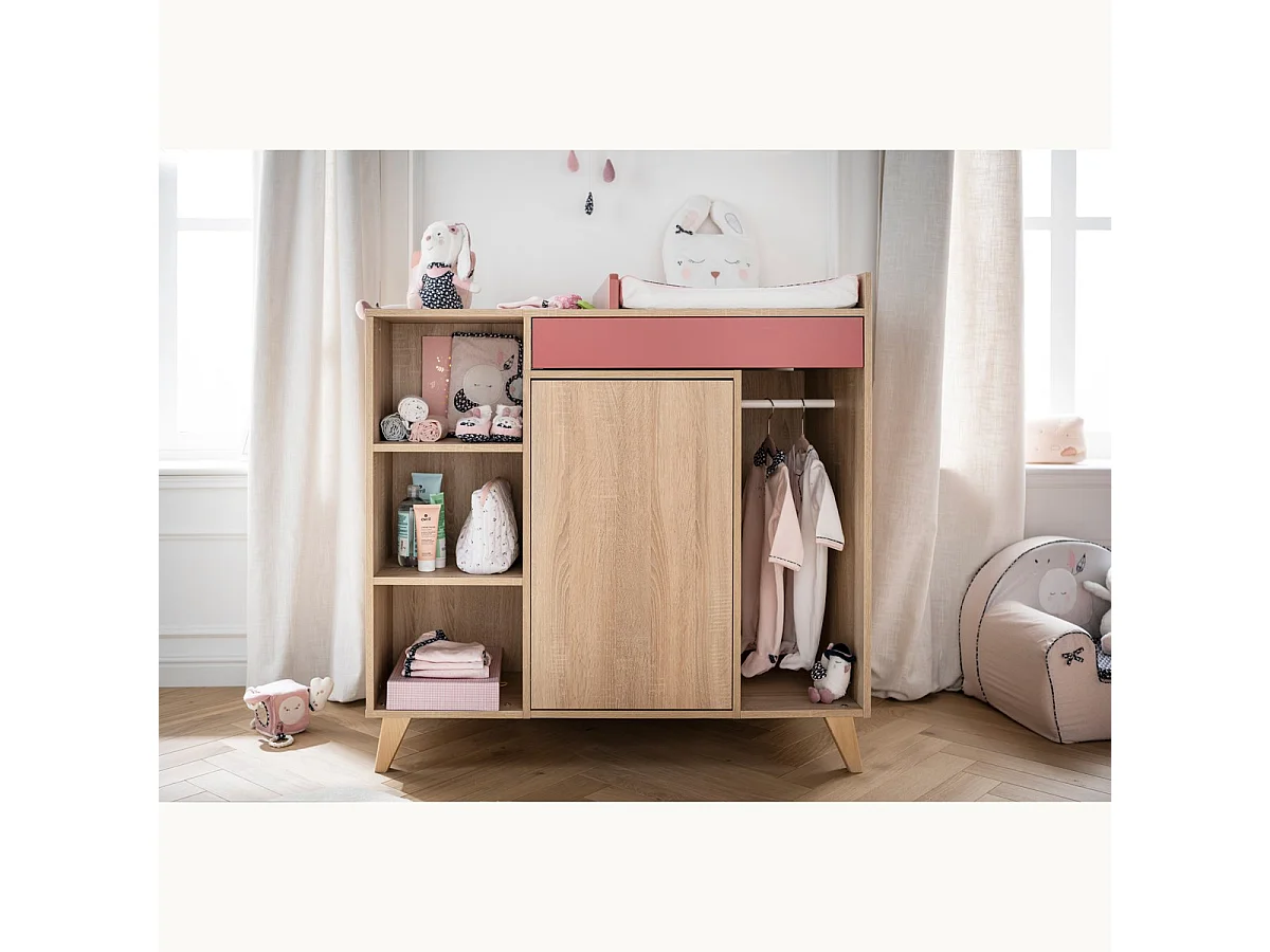 Comoda per bambini robusta con fasciatoio integrato colore rovere chiaro collezione DANAÉ.