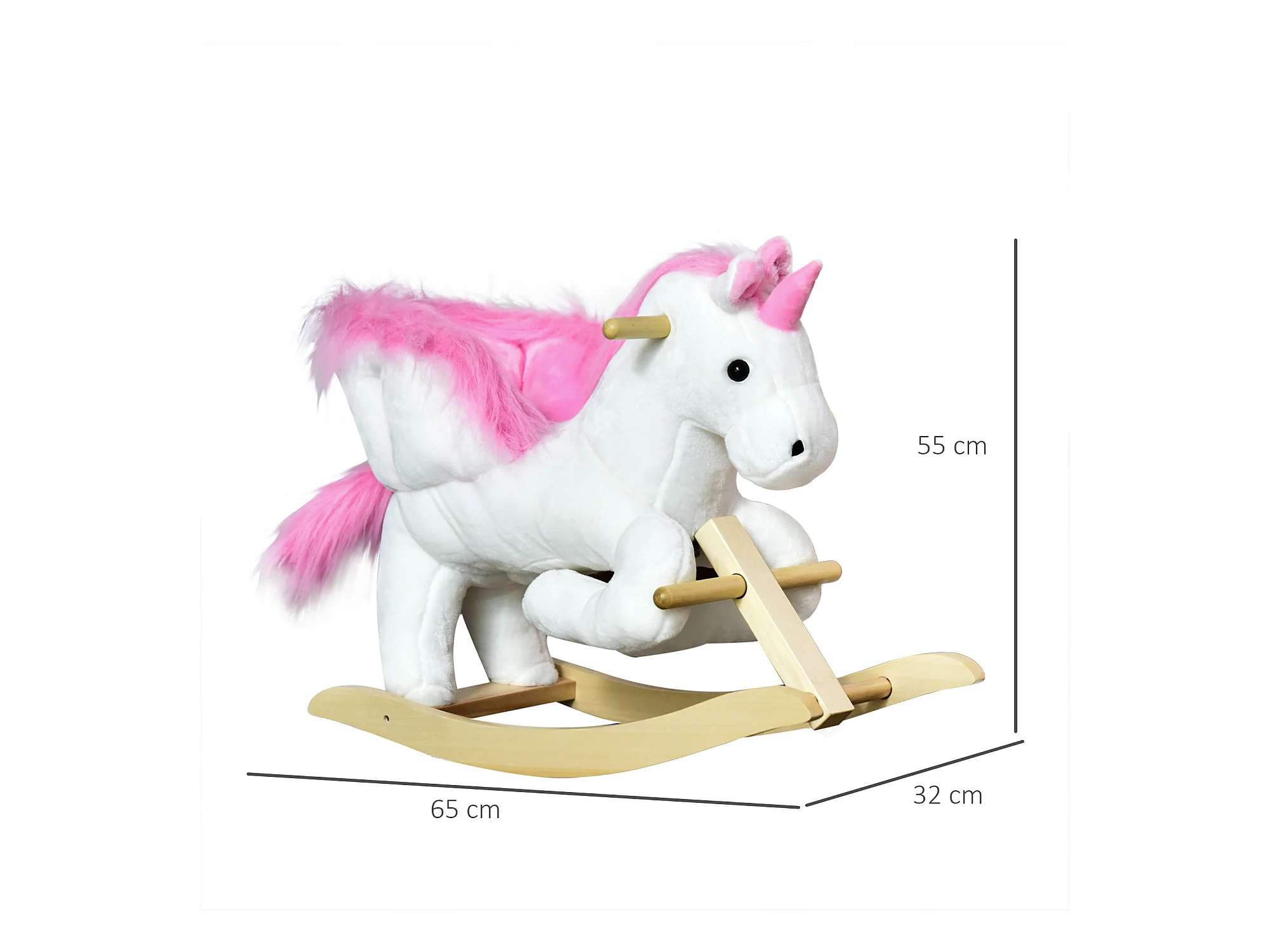 Unicorno a dondolo con musica e rivestimento peluche 65x32x55cm