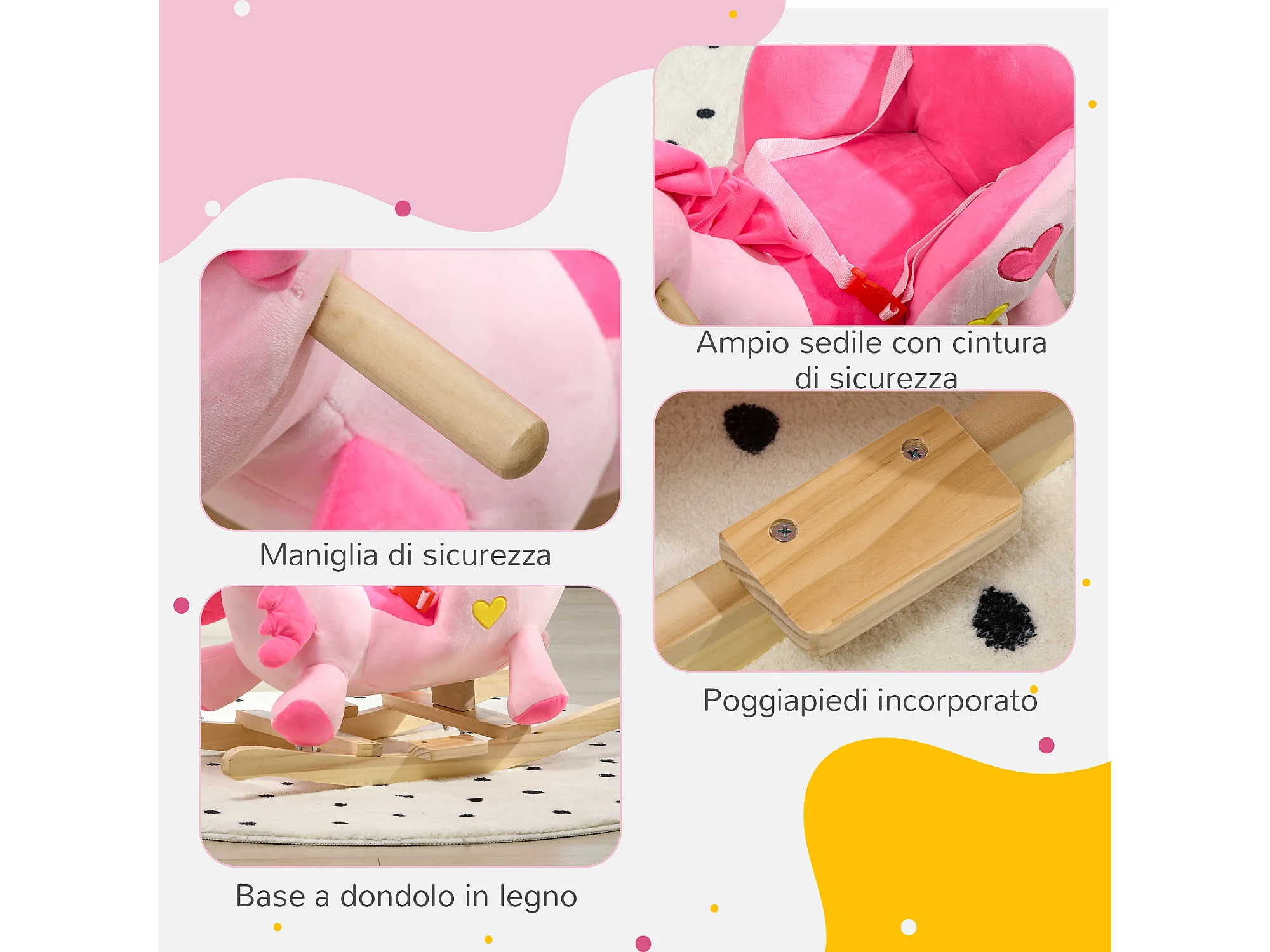 Unicorno a dondolo per bambini da 18-36 mesi con musiche e cintura