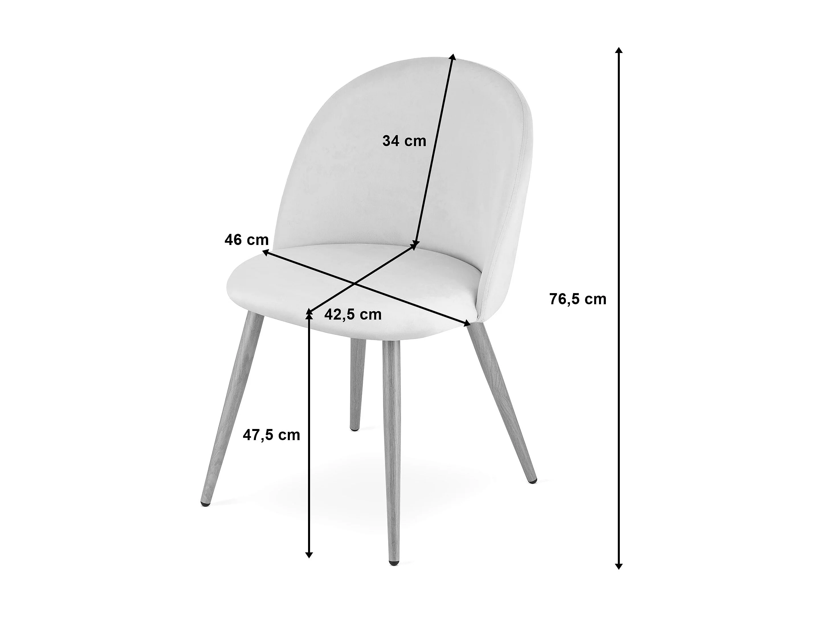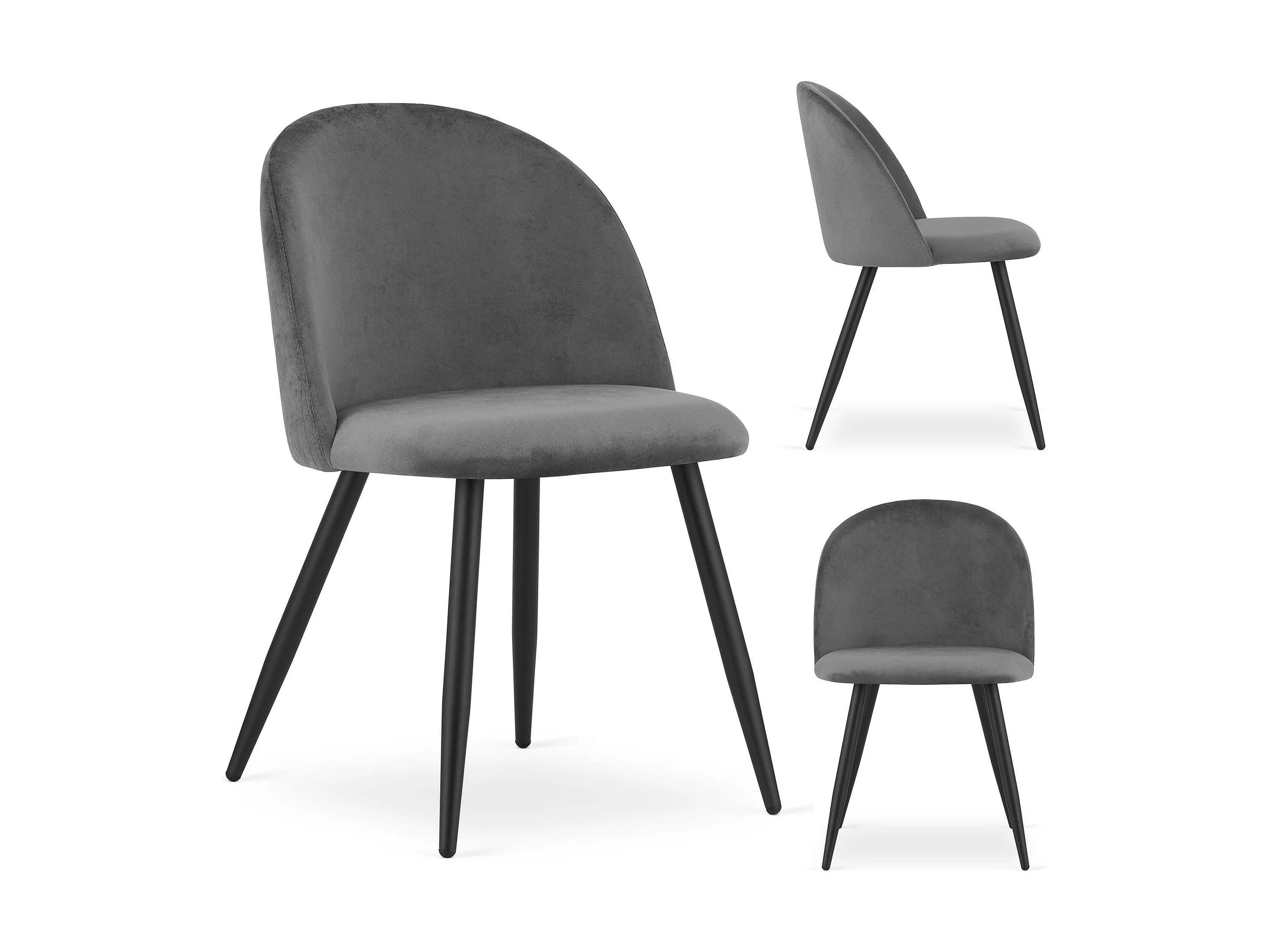 Valora BELLO Chair Set di 4 sedie in velluto grigio scuro con gambe nere