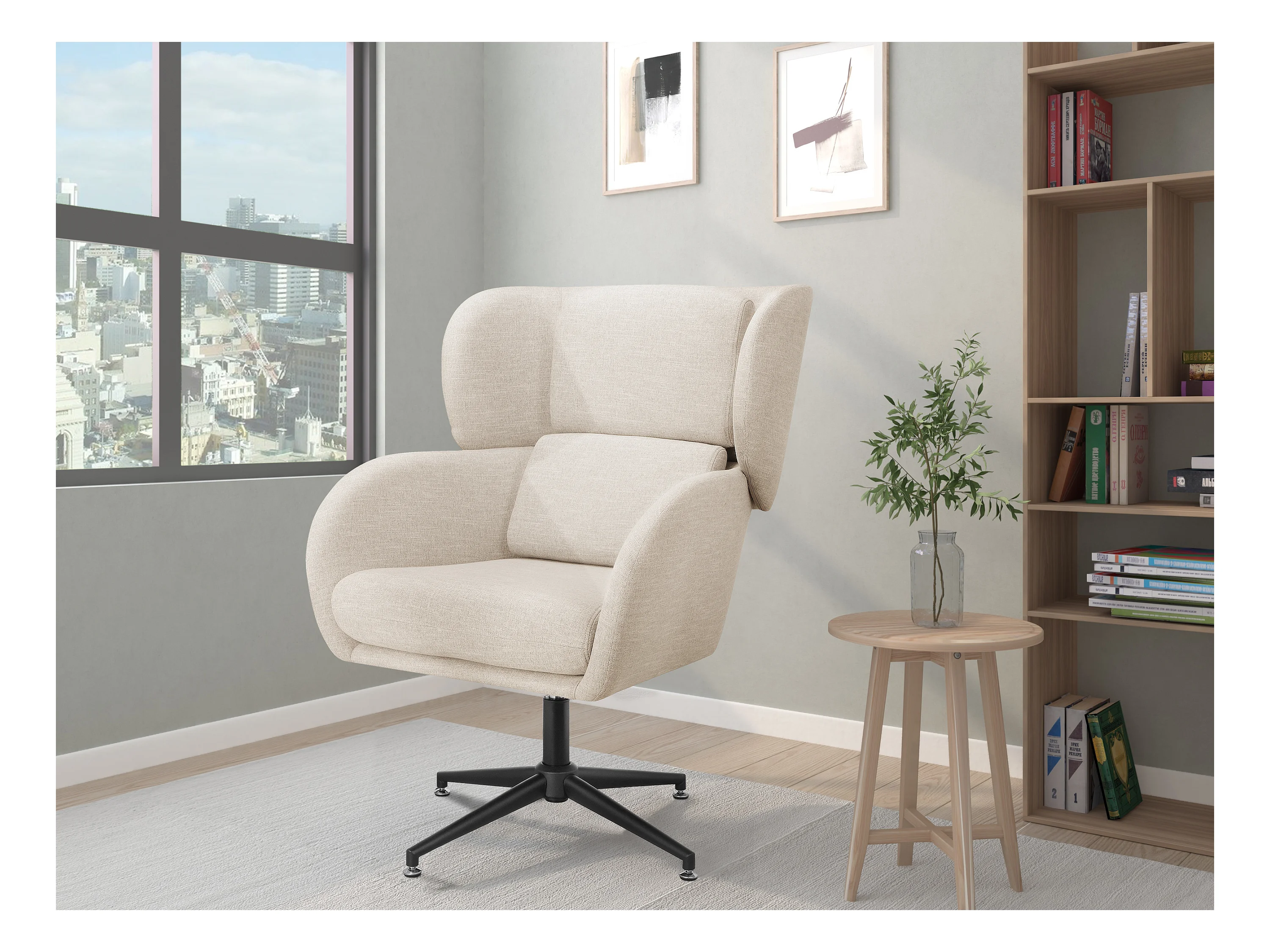 Vanessa | Sedia girevole in velluto crema