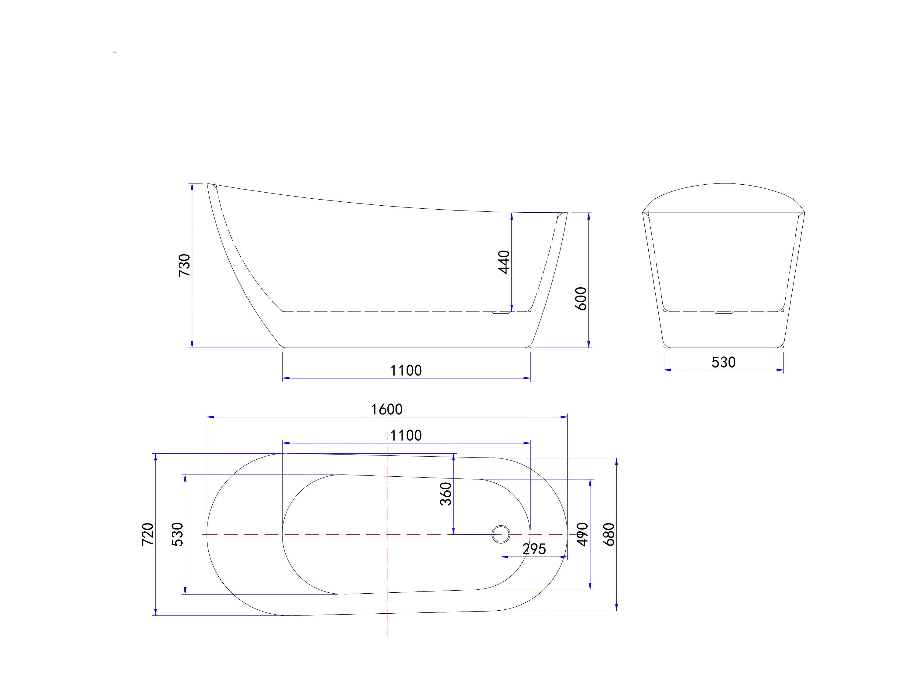 Vasca da Bagno a Isola 160x72x73 cm Vasca da Bagno Freestanding in Acrilico Bianco Ovale Irregolare