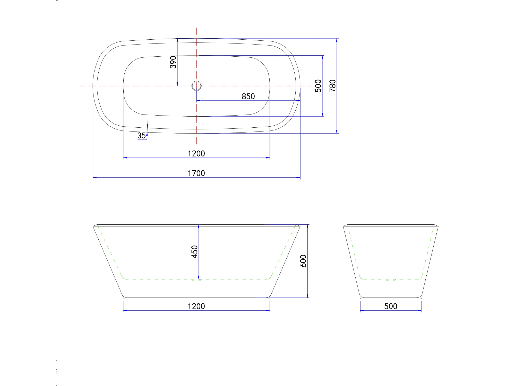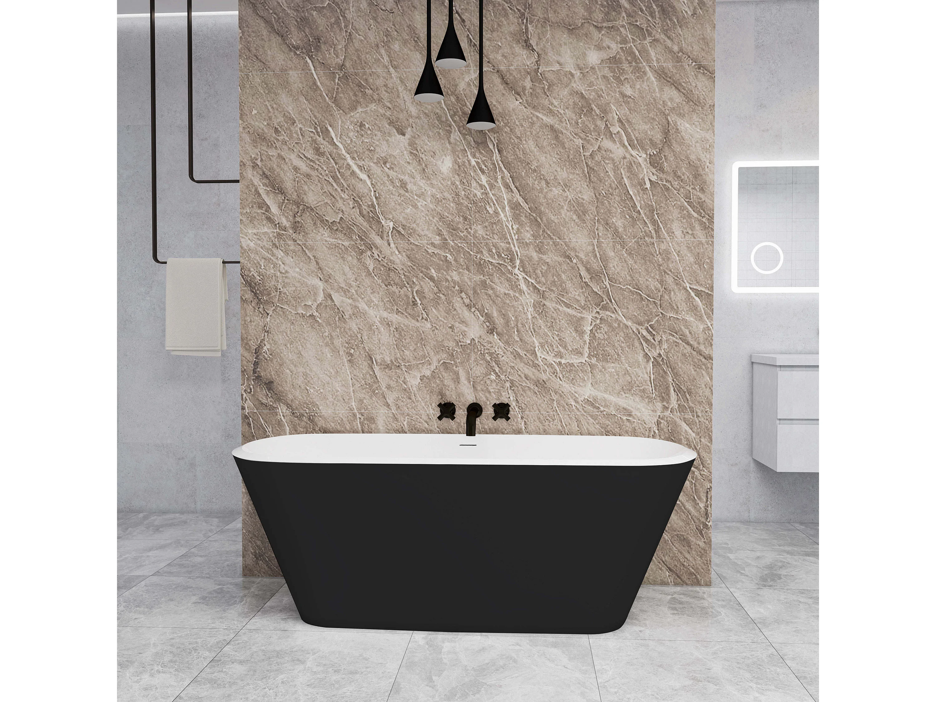 Vasca da Bagno a Isola 170x78x60 cm Vasca da Bagno Freestanding in Acrilico Nero Ovale