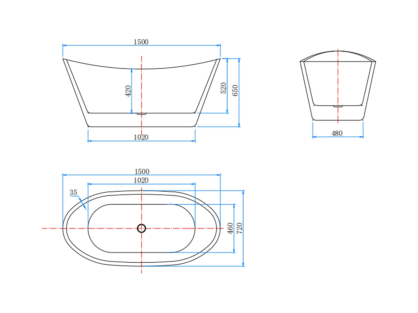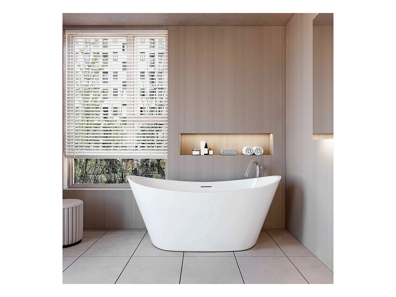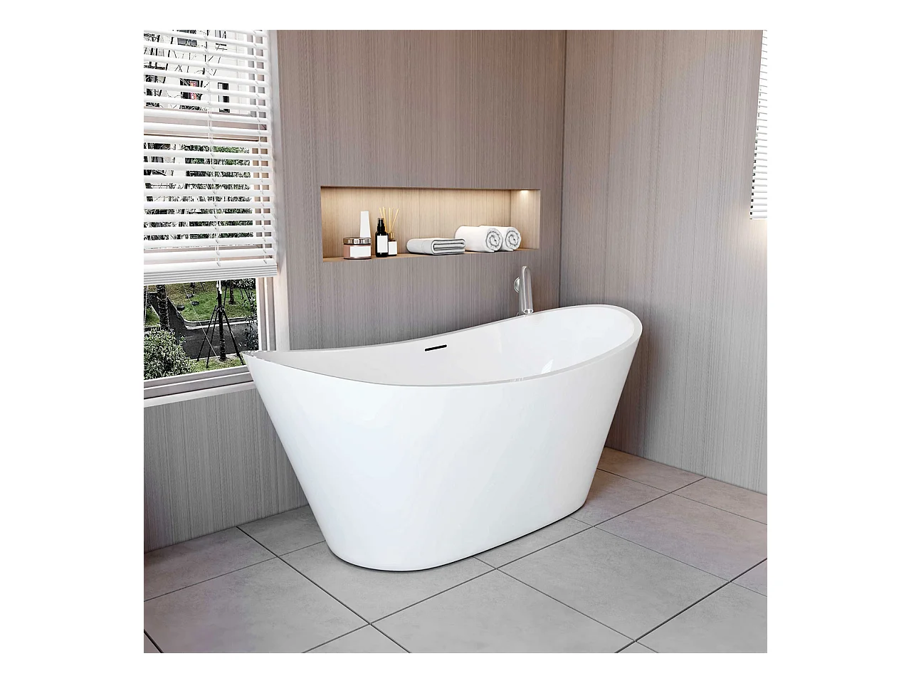 Vasca da Bagno a Isola Vasca da Bagno Freestanding in Acrilico da 150x72x65 cm, Colore Bianco, Forma di Barca Ovale