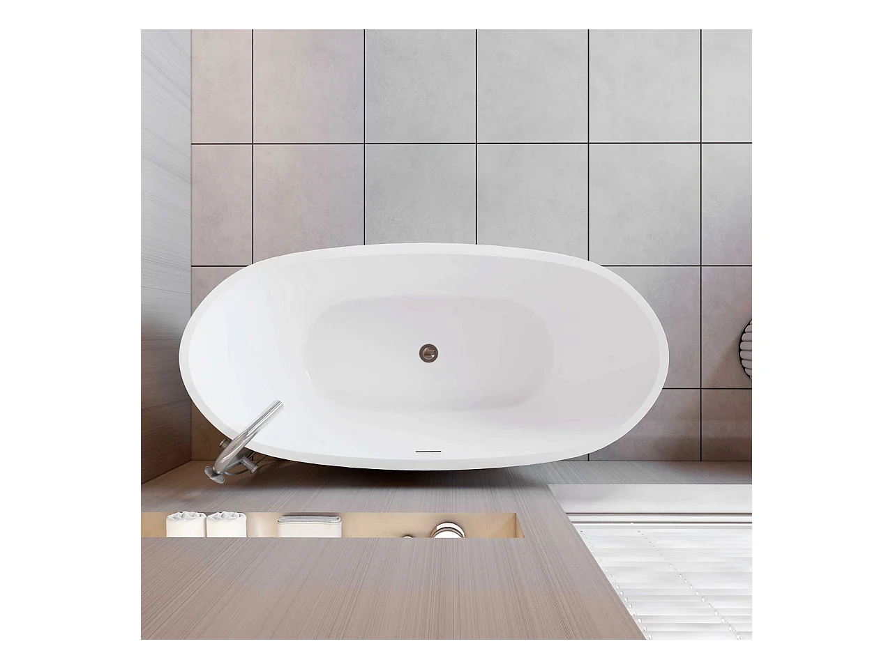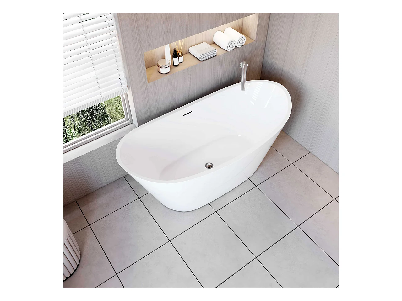 Vasca da Bagno a Isola Vasca da Bagno Freestanding in Acrilico da 150x70x58 cm, Colore Bianco, Forma Ovale